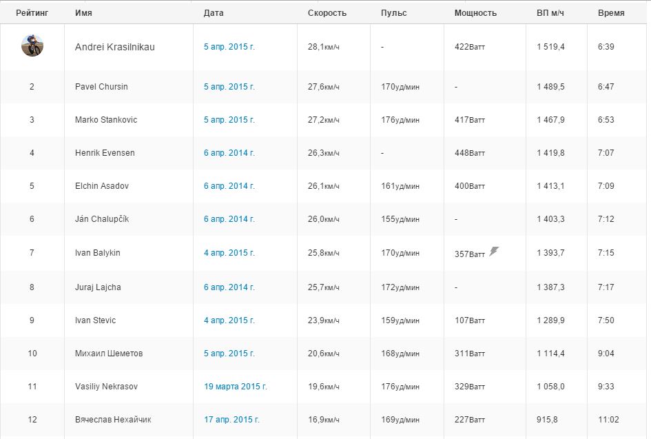 7. набор высоты как можно больше, но без очень крутых или повторяющихся участков - для интереса большинства участников.