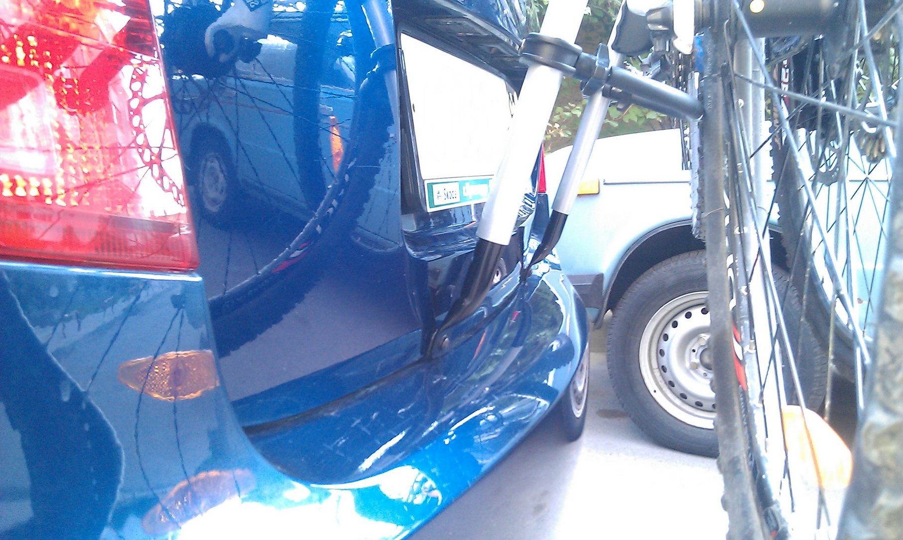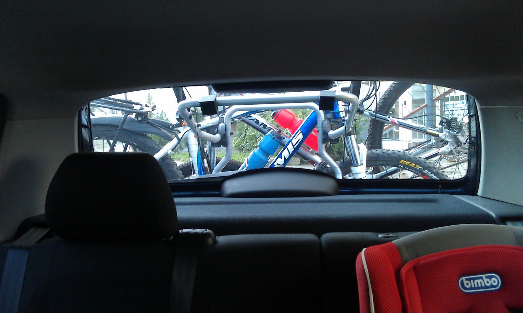 На фото видно, что велосипеды с обеих сторон авто выходят за габариты. Это накладывает определенные обязательства на водителя: маневрировать с осторожностью, предварительно осмотревшись в зеркала, в которые теперь уже видно меньше!!!