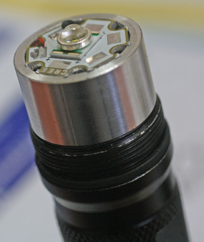Канеш, точнее намазал резьбу на гильзе со светодиодом, которая вкручивается в рефлектор, а рефлектор снаружи обмотал плотно фольгой с термопастой, модуль туго входит в корпус, и тепло на много лучше передается на него, ну и как писал на улице, при движении охлаждается очень хорошо.