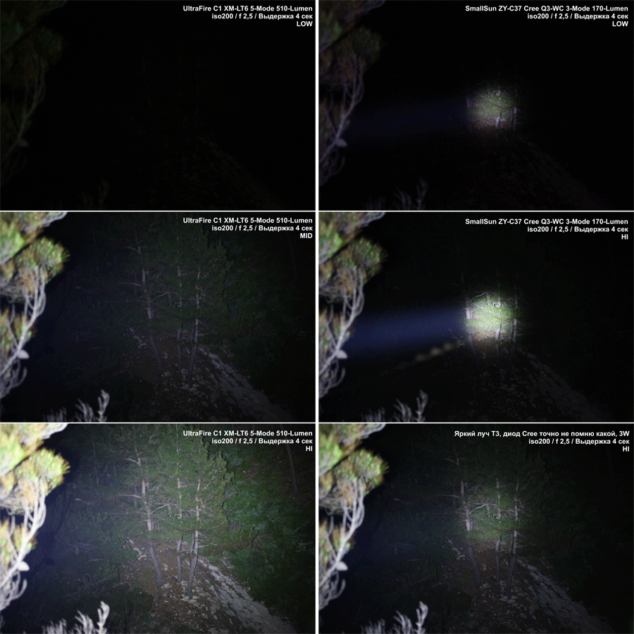 Про Brinyte XML-C8: засветка широка - это хорошо, да. Но жирный минус - маленькое, яркое и резкое центральное пятно :( на модулях D26 свет гораздо интереснее получается
