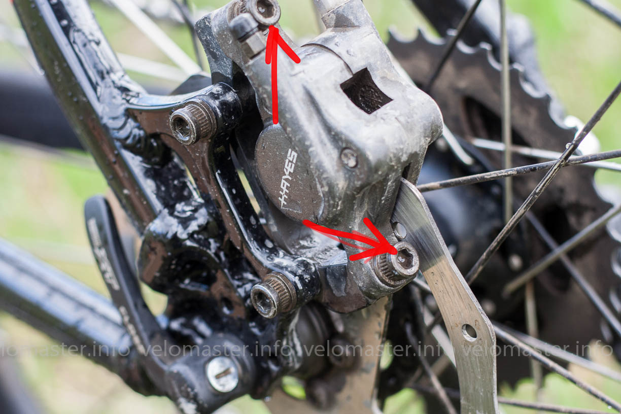 гидравлика, замечательно, если бы изначально заметил что калипер стоит не ровно, все былоб добезумия проста, ослабляеж винты, это два винта которым калипер прикручен к переходику или к вилке,