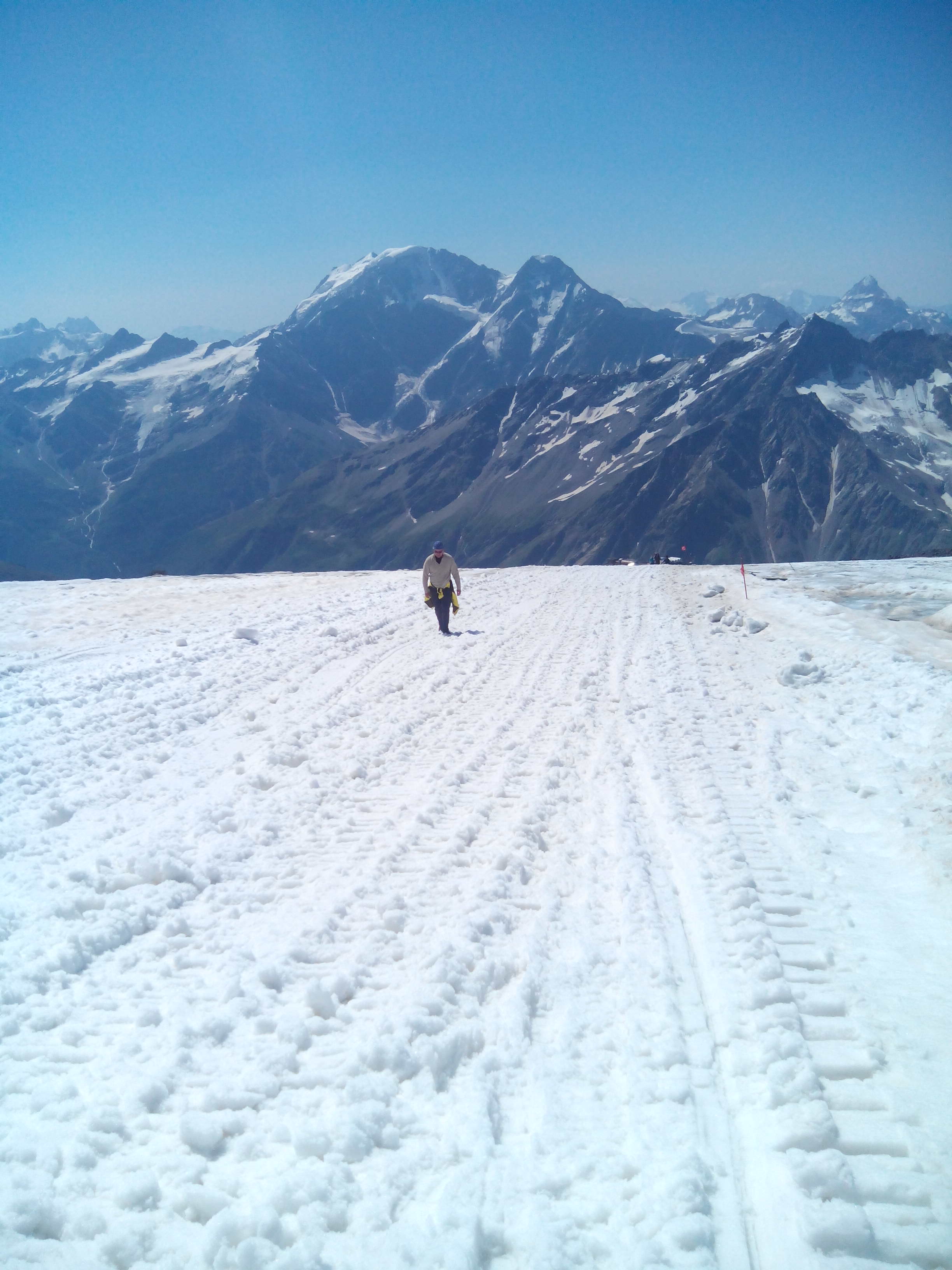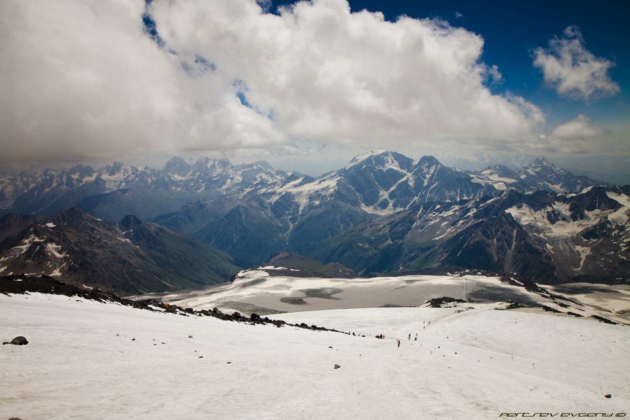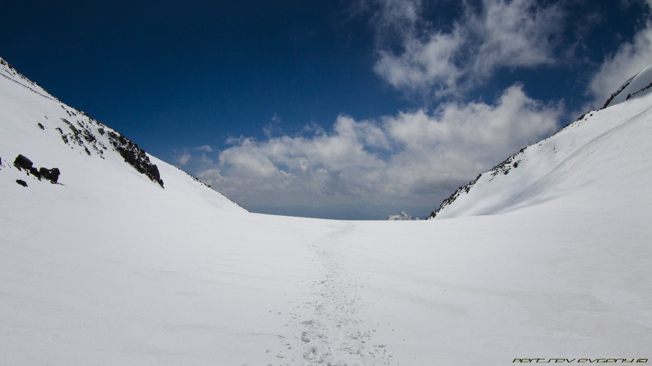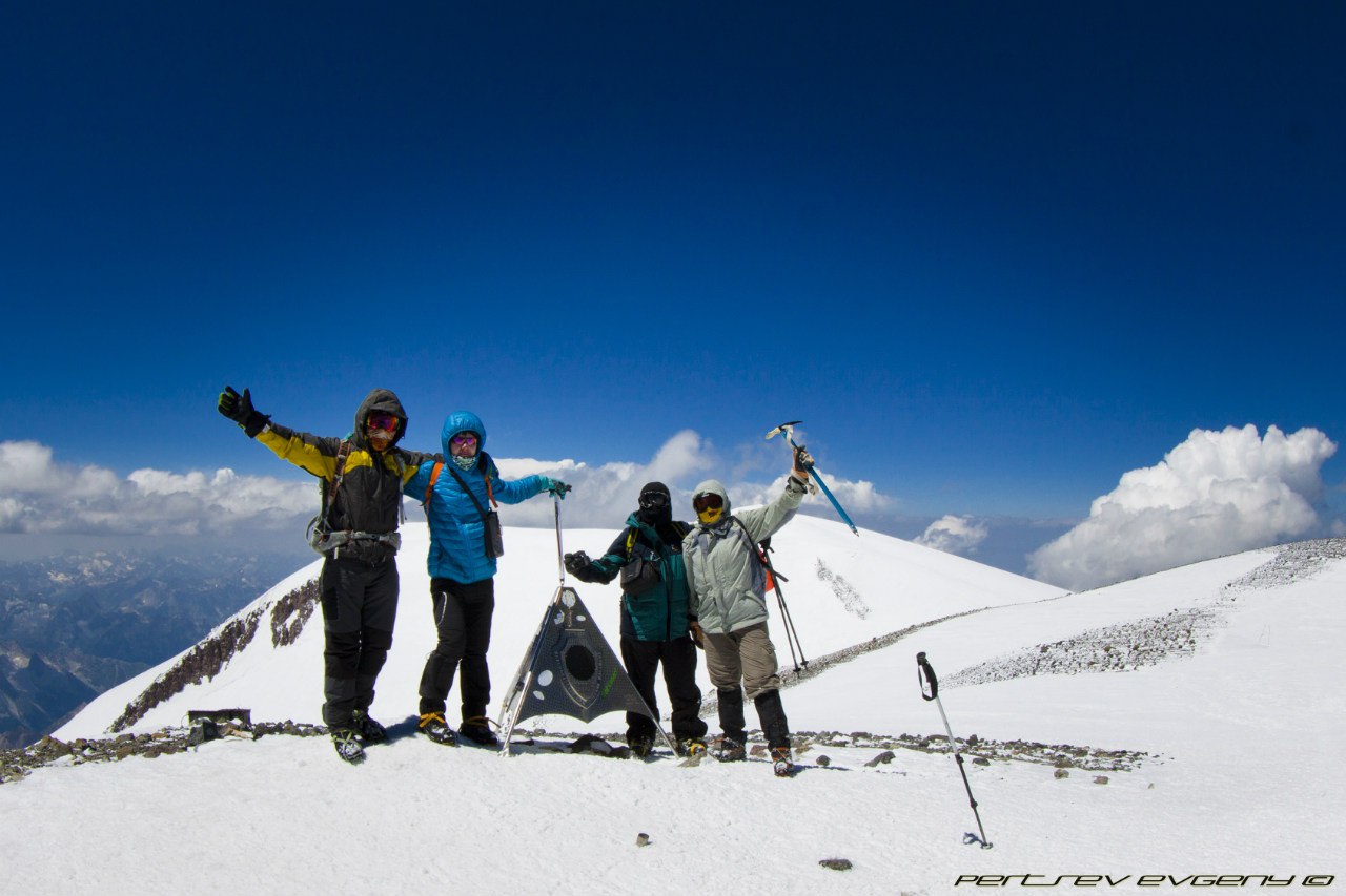 Обнимаю Женю, он счастлив. Мы сделали это. Мы наслаждаемся видами. Мы здоровы и хорошо себя чувствуем. Фото, фото, фото... Наделали фото. Но оно никогда не передаст полной красоты. Это правда волшебно. На спуске просто летим. Кошки держат на чистом белом снегу. По дороге встречаем Алика и Алину, подбадриваем незнакомых людей, которые выглядят особенно измучанными. У меня в голове зреет план, как уговорить Женю идти на восточную вершину, а он говорит, что должен быть повод сюда вернуться. Но тут произошло нечто ))))