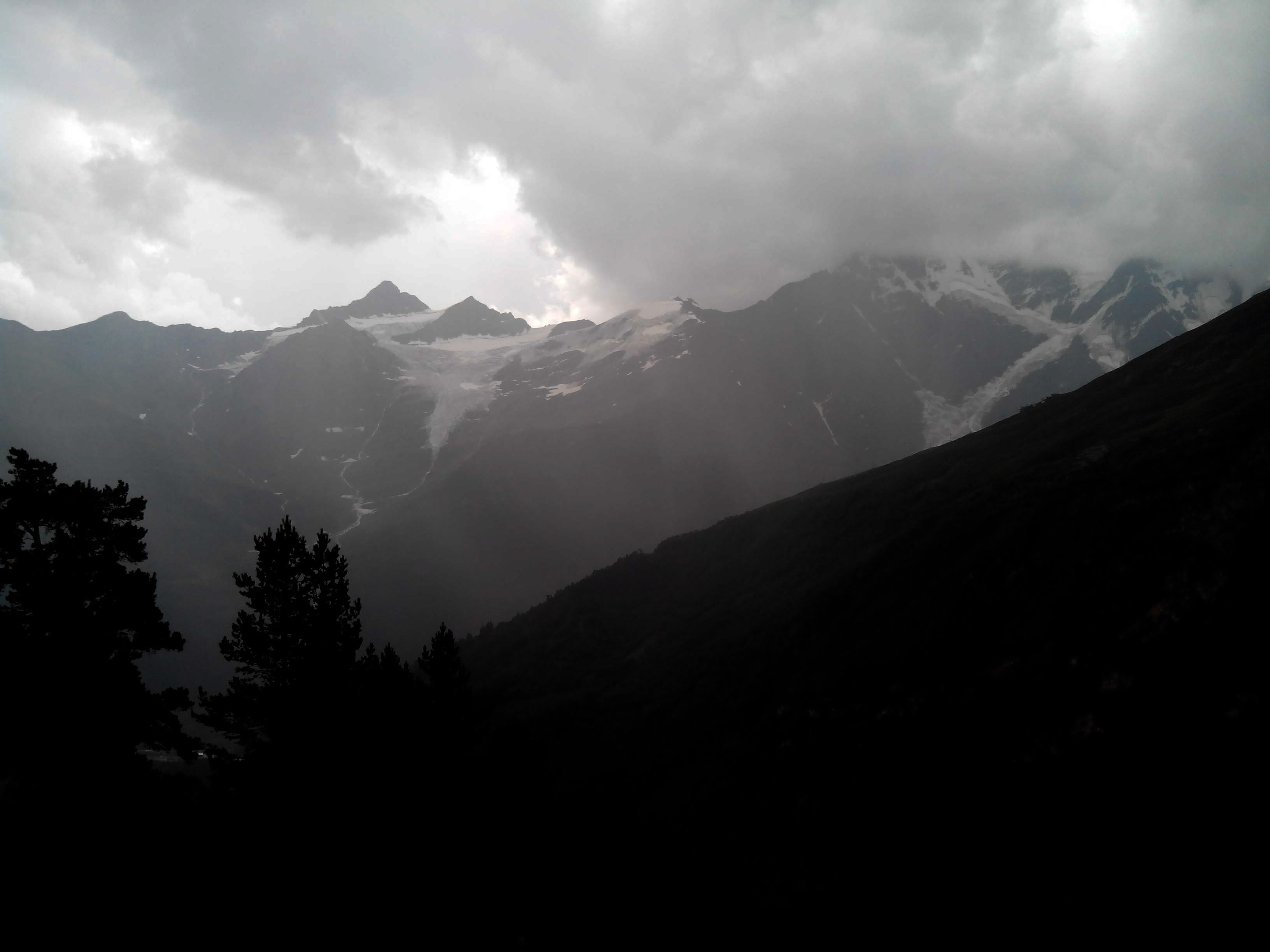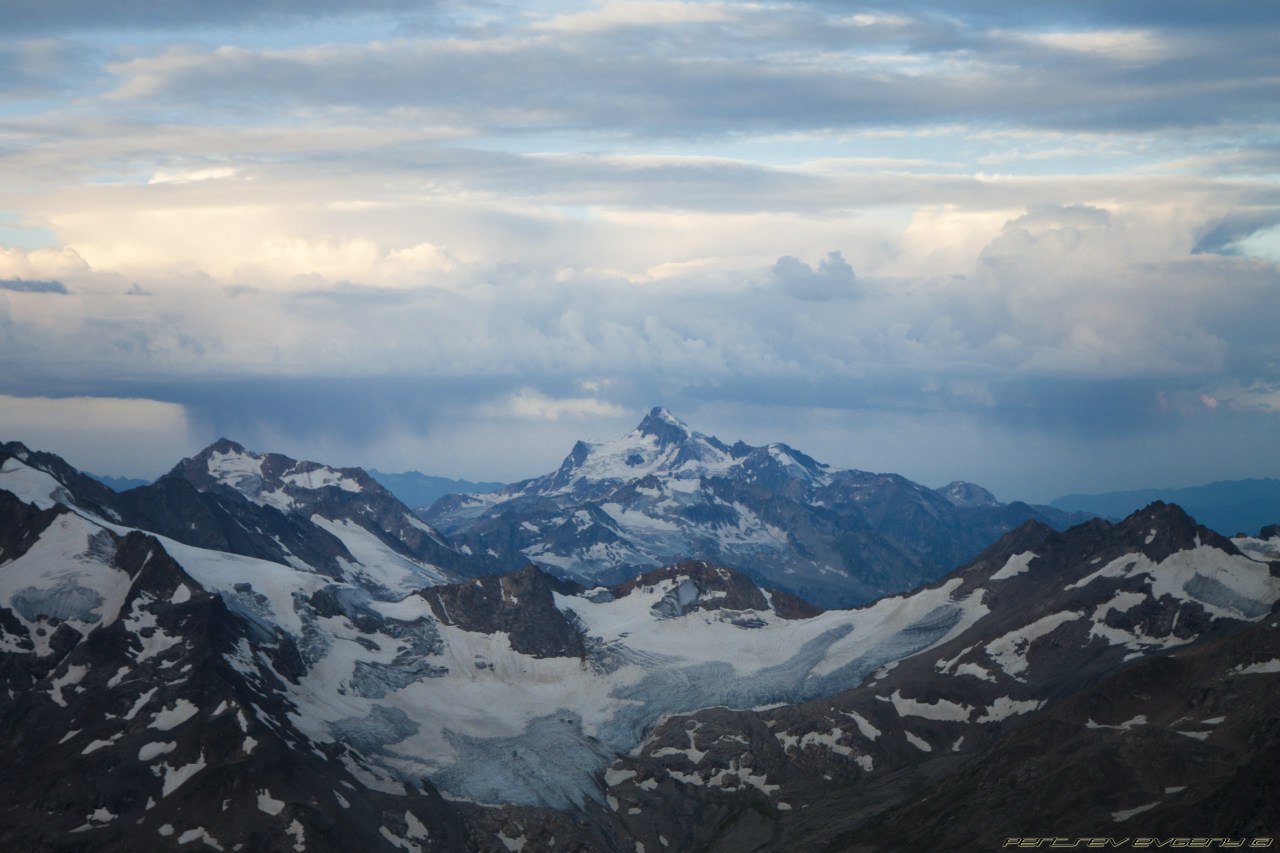 На этой вершине мы уже стояли вместе, вчетвером с Борей и Олей. Вместе. Это дорогого стоит. Когда начали спускаться вниз, обратили внимание, что тучи сгущаются, причем со всех сторон. После обеда обещали сильные проблемы с погодой, надо было спешить вниз. На спуске встретили Алика, идущего к вершине, предупредили насчет погоды, но...