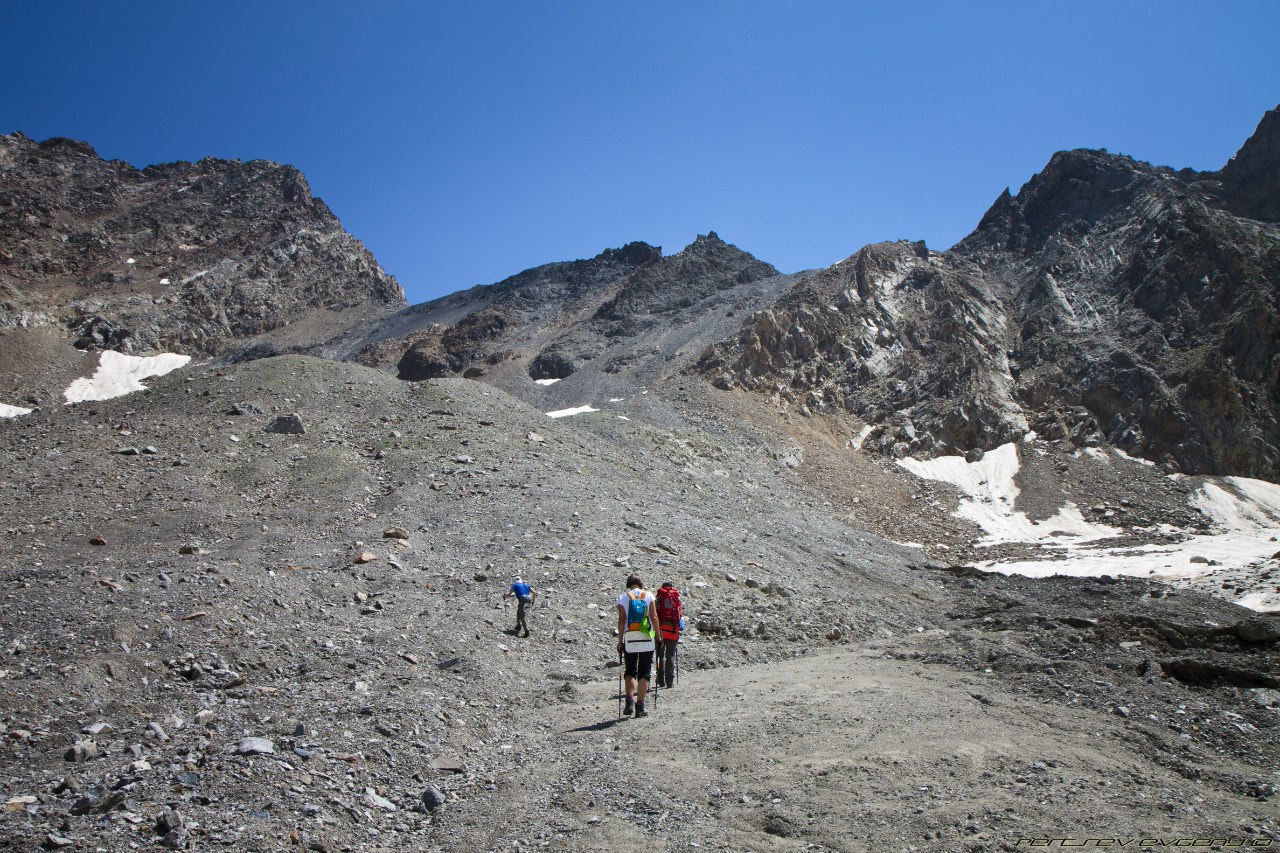 Позавтракав, мы отправились в нашу первую серьезную вылазку на перевал с милым названием Койавганауш. Жара стояла жуткая, идти было достаточно трудно. В итоге царем горы стал только Алик, периодически спуская вниз камни