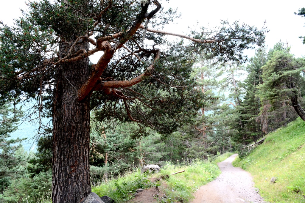 Виды потрясающие, хоть и размытые, небо ясное, облаков почти нет. Идем чуть-ли не в футболках, обгоняя других, таких же как мы. Решили идти до Косой Полки (ну или до момента, когда сядет батарейка)) На Скалах встретили небольшую компанию, несколько ребят и девочка. Часть пошла вниз, а трое отправились за нами. Через время осталась только девочка, идущая с нашей скоростью. Отца по телефону она звала Аликом ^___^ Кто-то по дороге сказал, что если мы так пойдем дальше, то успеем сходить на вершину до наступления плохой погоды