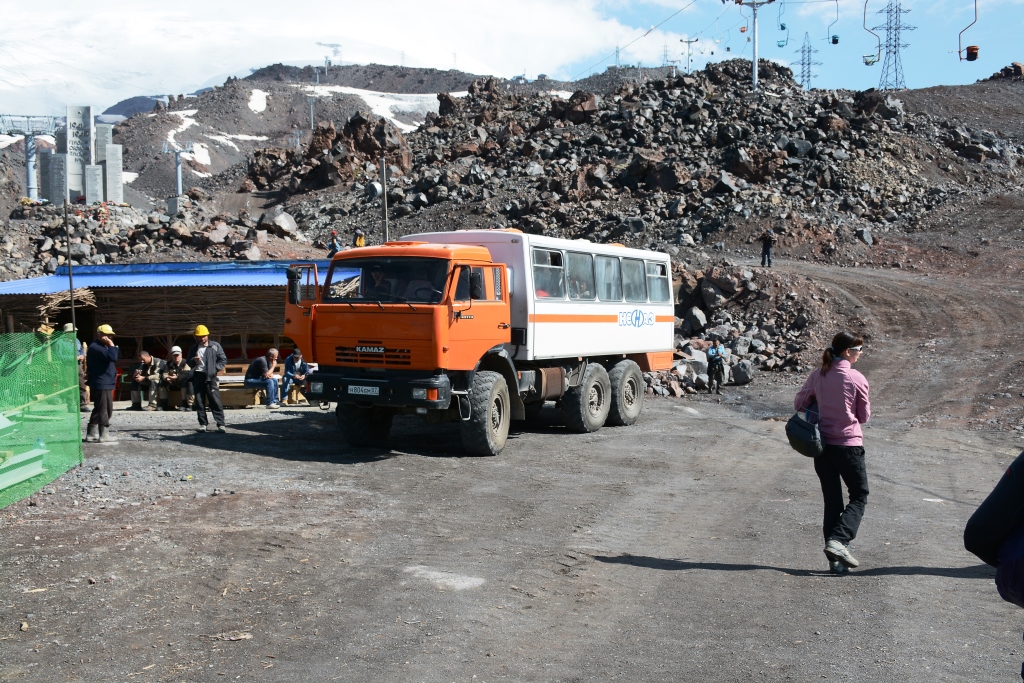 6. Азау и простые послепоходные радости.Переночевав в приюте, как убитые, мы собрали огромные рюкзаки с остатками еды и кучей вещей. Как ни странно, моя женская сумочка на 70 литров вместила в себя всё. Сюрприз первый - первая канатка сломана. Надо идти пешком. Может у них выходной для канатки, чтобы машины зарабатывали на подъемах?