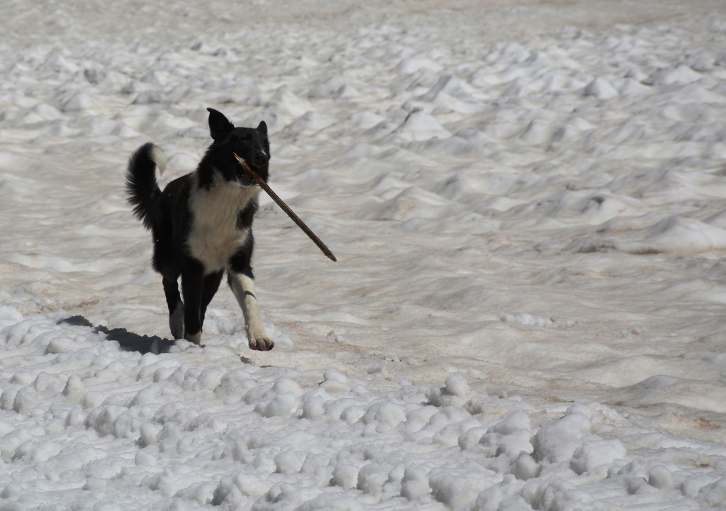 В первый день у нас был короткий маршрут, надо было только перенести часть вещей на приют, повыше. Заодно немного акклиматизироваться. Часть дороги была еще голая земля и только ближе к приюту начался снег. Мы отнесли вещи в наш будущий домик и вернулись на Бочки.