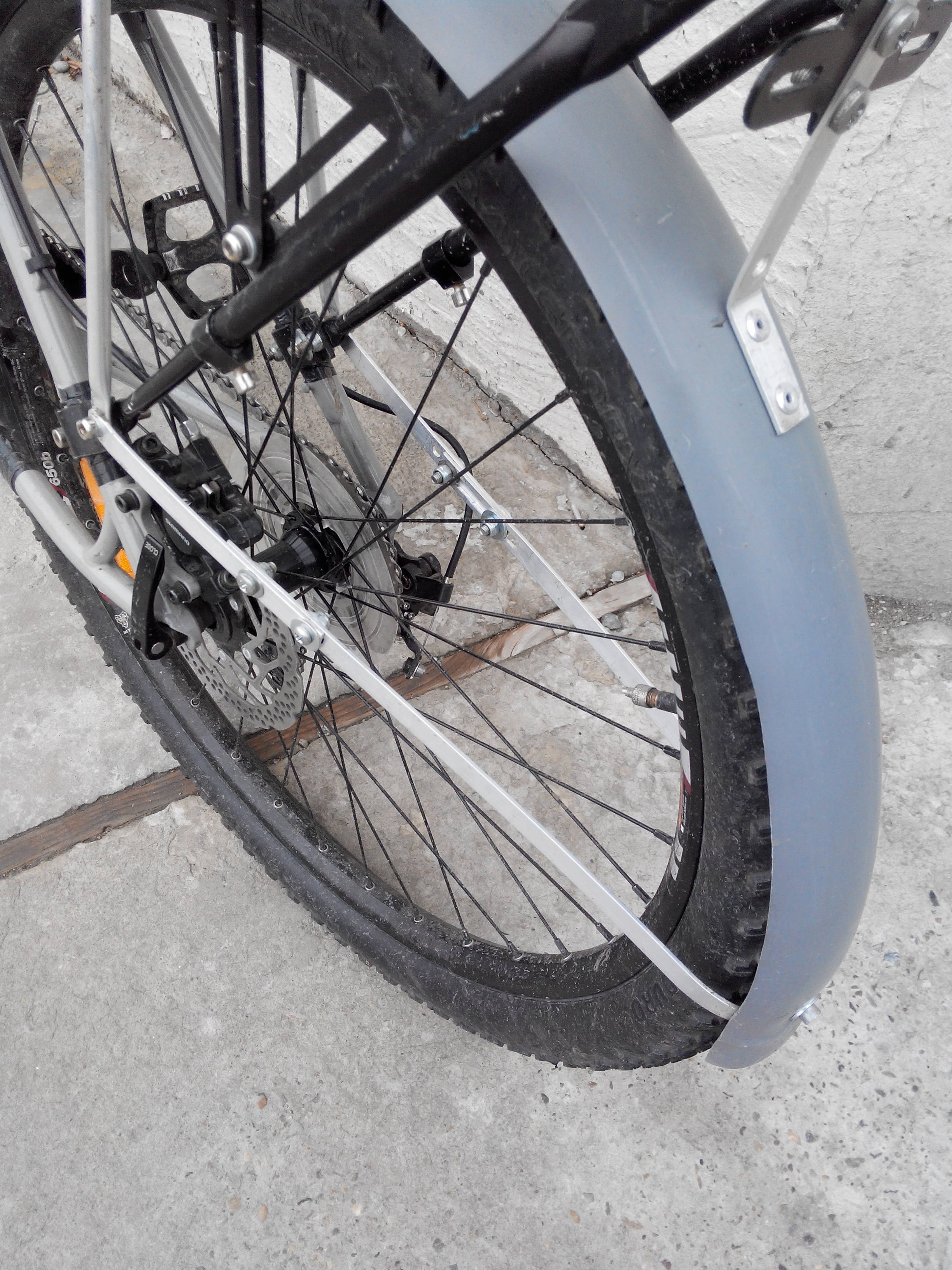 Много передвигаюсь по городу, и с приходом сезона дождей резко встает проблема грязи и луж на обочинах. На предыдущем велосипеде (до угона) и использовал 3 разных комплекта крыльев, два из которых рассыпались, а последний из кЕтайметалла был ничуть не лучше. С покупкой нового коня крылья решено не покупать, а срукожопить самому. Жаль, что не сделал промежуточные фото работы, но времени было в обрез.