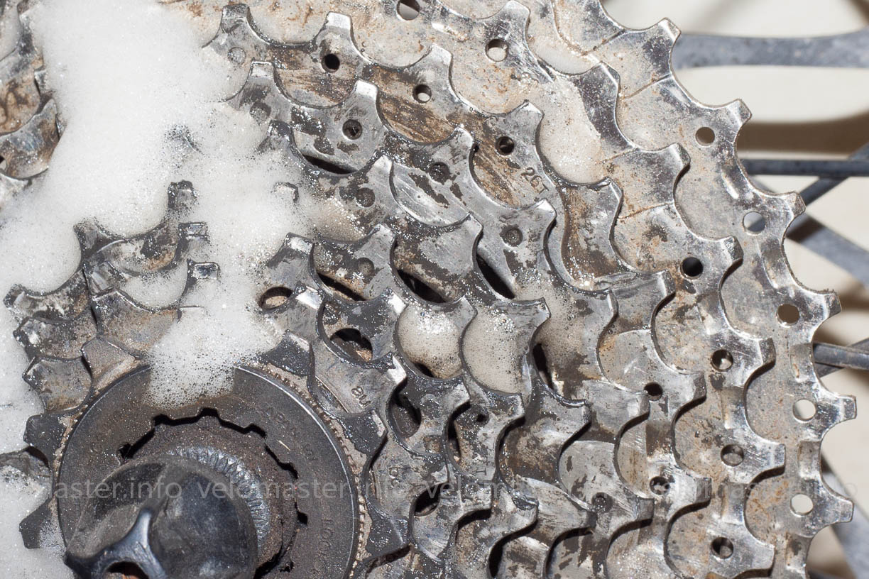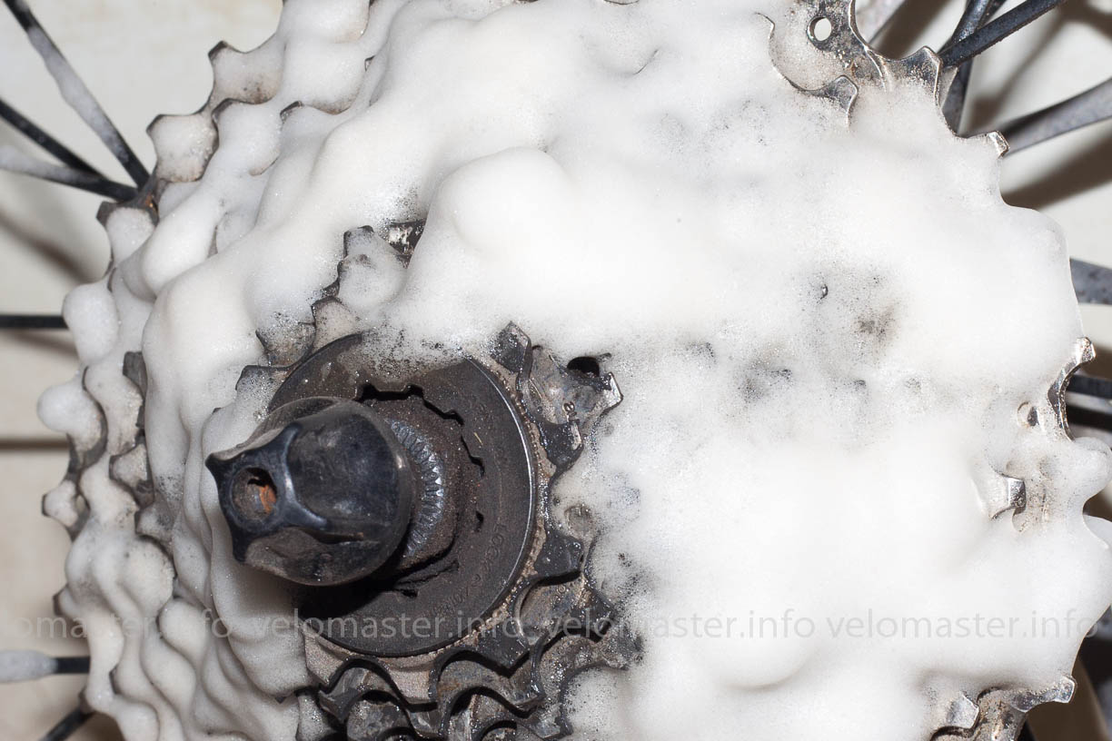 цепь чистится схожим образом, покрываем её пеной, ждем, набираем воду в машинку для чистки и машинкой смываем остатки смазки с грязью..