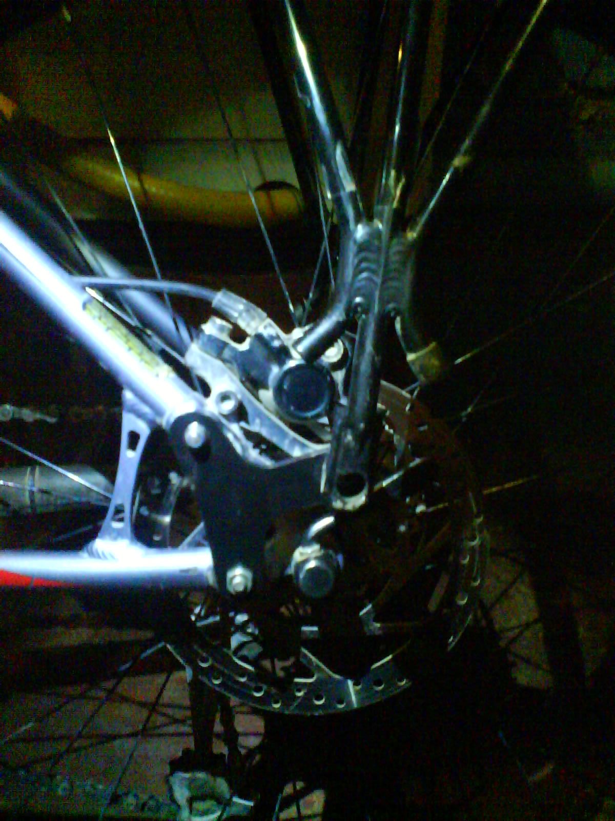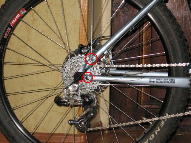 Ну и закрепил в дропаутах болтами. Вообще-то, вместе с велосипедом, в магазинах, должны были давать втулки под дропы, которые вставляют в дропы, а в них болты . Но , в моем случае, таких втулок не дали, я сначала я просто отрезал из трубки бронзовой кусочки , обмотал их изолентой под нужный размер дропов. А позже, мне уже знакомый дал нужные втулки со своего Аваланча. Поэтому и мои втулки и родне как раз были использованы для крепления переходников.