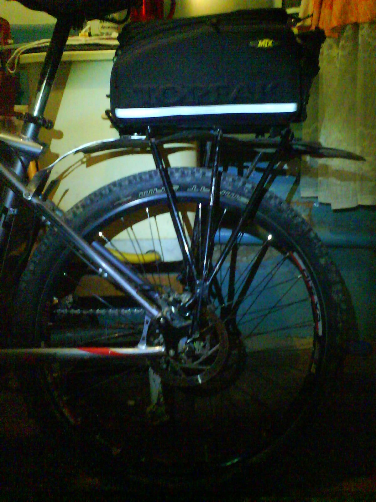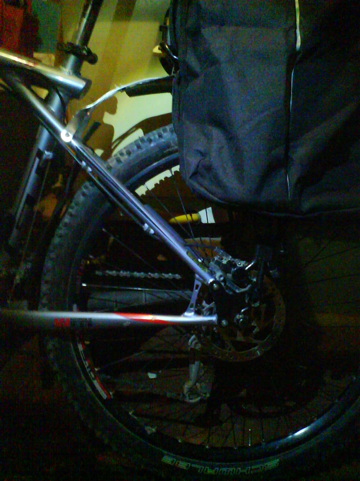 Багажник стал выше, но все равно задевал я пятками, хотя и меньше. Да и седло, не куда было опускать, по необходимости на спусках, т.к сумка плотно подпирала его .Ну и было неудобно в верхний карман сумку что-либо ложить.