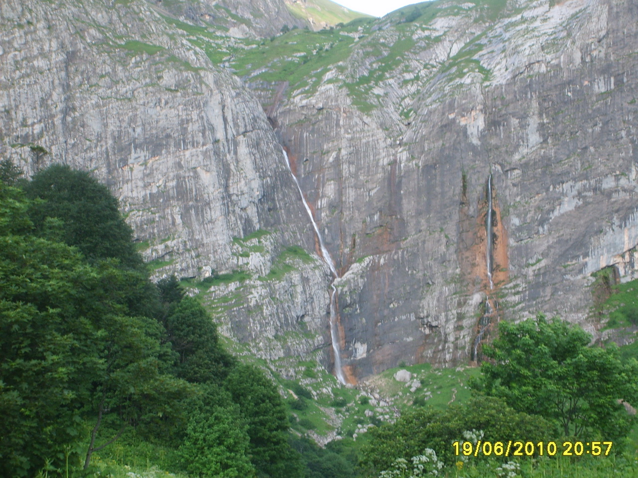 Я никогда не был выше километра в горах, там высота составляла 1700 м. Дождь смыл усталость и мы шли, широко открыв рты-настолько нереальной была красота вокруг! Тропа к водопаду пролегала через луга и лесок. Трава была по пояс, все цвело. Огромные колокольчики, лилии и еще какие-то цветы, словно выращенные в оранжереях, обрамляли тропу. Запах от лилий пьянил, от раноцветья кружилась голова! И вот он-ВОДОПАД! К слову сказать, их там было 2. Один вытекал прямо из дыры в скале, он был поменьше. Второй с грохотом обружшивался с огромной высоты, от него дул сильный ледяной ветер, брызги летели облаком тумана. Россомахин тут же предался зову природы и полез в ледяные струи малого водопада голым. Вода была ледяной, сводило руки, а струи больно били по голове. Немного повизжав, Россомахин выскочил как ошпаренный, потом полез Олег. Олега хватило секунд на 5, а мы со Шведом вообще не рискнули лезть. Я уже околевал от холода, сверху бесперывно лил ледяной дождь. Мы опрометью бросились обратно в лагерь. Там уже был костер, но сверху с деревьев лились потоки воды, все промокло. Спрятались под общим тентом, стали есть простую кашу из риса. Но от голодухи все казалось нереально вкусным. Однако всего было мало, еды не хватало. Неожиданно прекратился дождь и выглянуло солнце. Фишт озарился лучами заката, снег (там было много снега!) заиграл красками, а долина погрузилась во тьму. Это было сказочно! Долину освещал Фишт, и мы снова открыв рты, наблюдали это восхитительное зрелище!