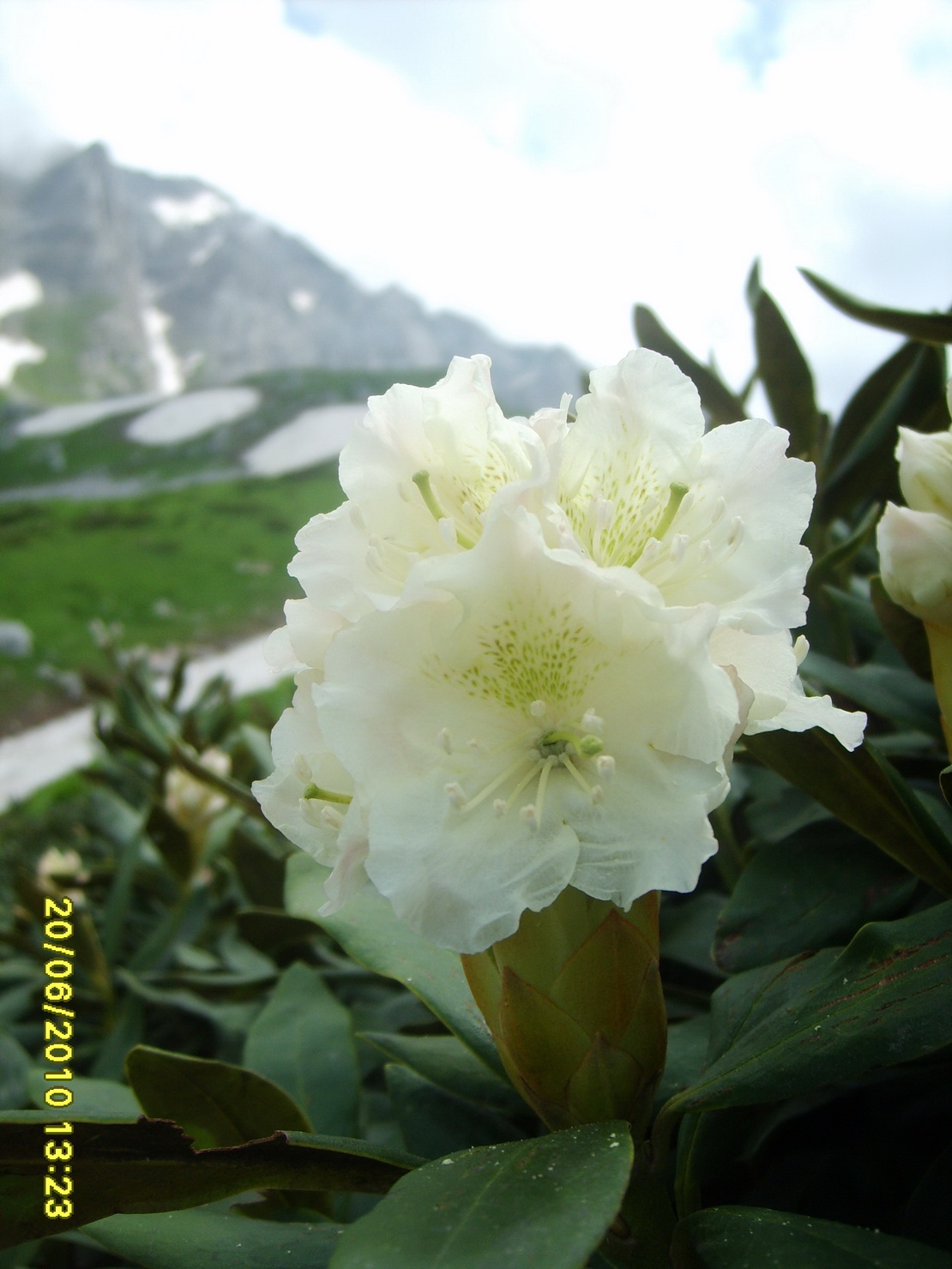 Вдоволь налюбовавшись дачей, пошли дальше. К слову сказать, удавалось иногда и проехаться, а на подходу к перевалу вообще была довольно сносная катабельная тропа. И вот еду я по этой тропе и любуюсь удивительным явлением-цветением рододендронов. Они были там 3-х видов: желтые пахучие, белые и розовые. Цвели они так пышно, что казалось, что едешь через клумбу или ботанический сад. На одном из поворотов я остановился и стал слезать с вела и тут услышал дикий вопль Россомахина.