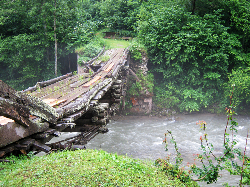 Утром на третий день переезжаем речку Ачипсту по мостику и едем мимо кордона Умпырь дальше по тропе.