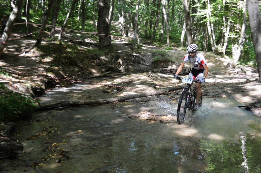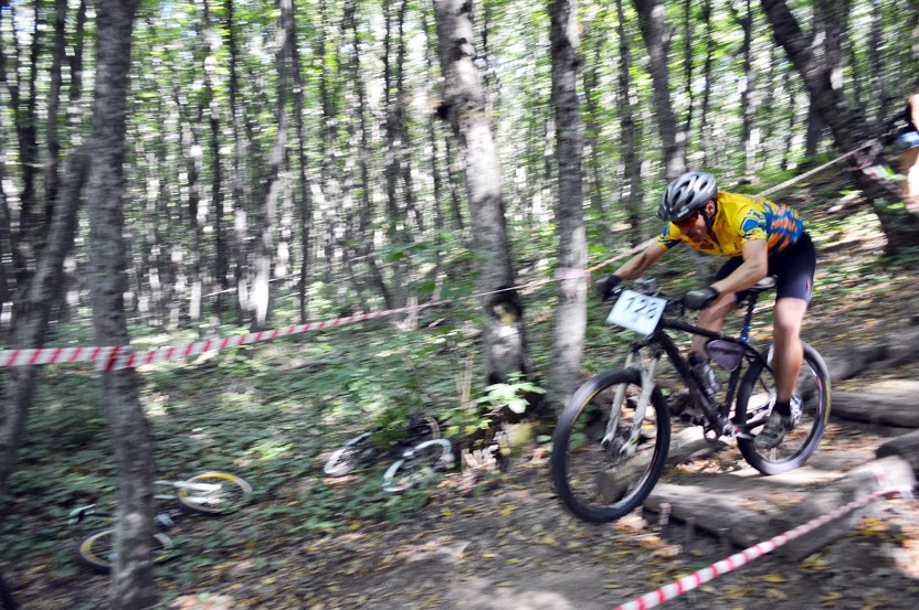 Старт категорий "Элита" и "Мастера", объединенных в один заезд, затянулся и был дан аж в третьем часу. Стартовали вроде не очень резко, но я возился с Гармином, который дал мне на гонку Витя, из-за чего на первом подъеме ехал где-то в середине. Когда уехали с асфальта, я уже пробрался на 4 позицию позади Вити vul'а. Впереди не так уж далеко ехали Ваня Гренавцев и Никита Бражинский из Новопавловска. После брода Витя неожиданно упал на корнях, из-за чего я чуть на него не наехал. Пришлось ненадолго остановиться, теряя драгоценные секунды и отпуская все дальше Ваню с Никитой.