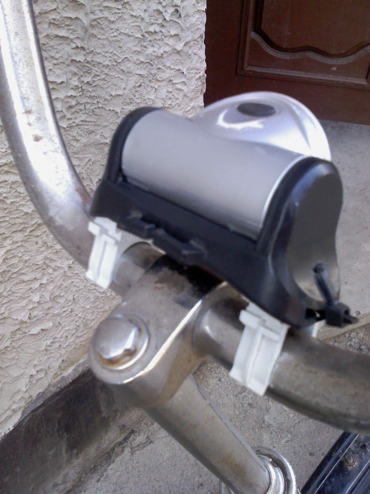 За несколько лет эксплуатации на кетайском фонарике погибли эластичные лямки ,попросту разложились резинки. Вроде и наКуйненужен и выкинуть жалко. Приложил к рулю этого велосипеда ,и осознал что тут ему и место. Как его закрепить подручными средствам сразу не придумал и отложил на время.Просматривая форум наткнулся на решение товарища "Скрипка",он использовал крепление от насоса.Идея была хороша но не оптимальна из за низкой доступности самого крепления от насоса, и несиметричности двух его хомутов( скоб ,хз). В силу професии столкнулся на работе с хомутами для фиксации гофрошланга.Вот оно и подошло ,и доступно в различных размерах ,и стоит сущие копейки.