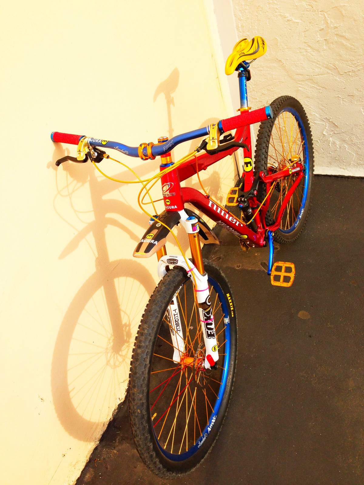 Строго черно-синий будешь собирать? У меня тут безумная идея поставить желтые колеса на красную раму