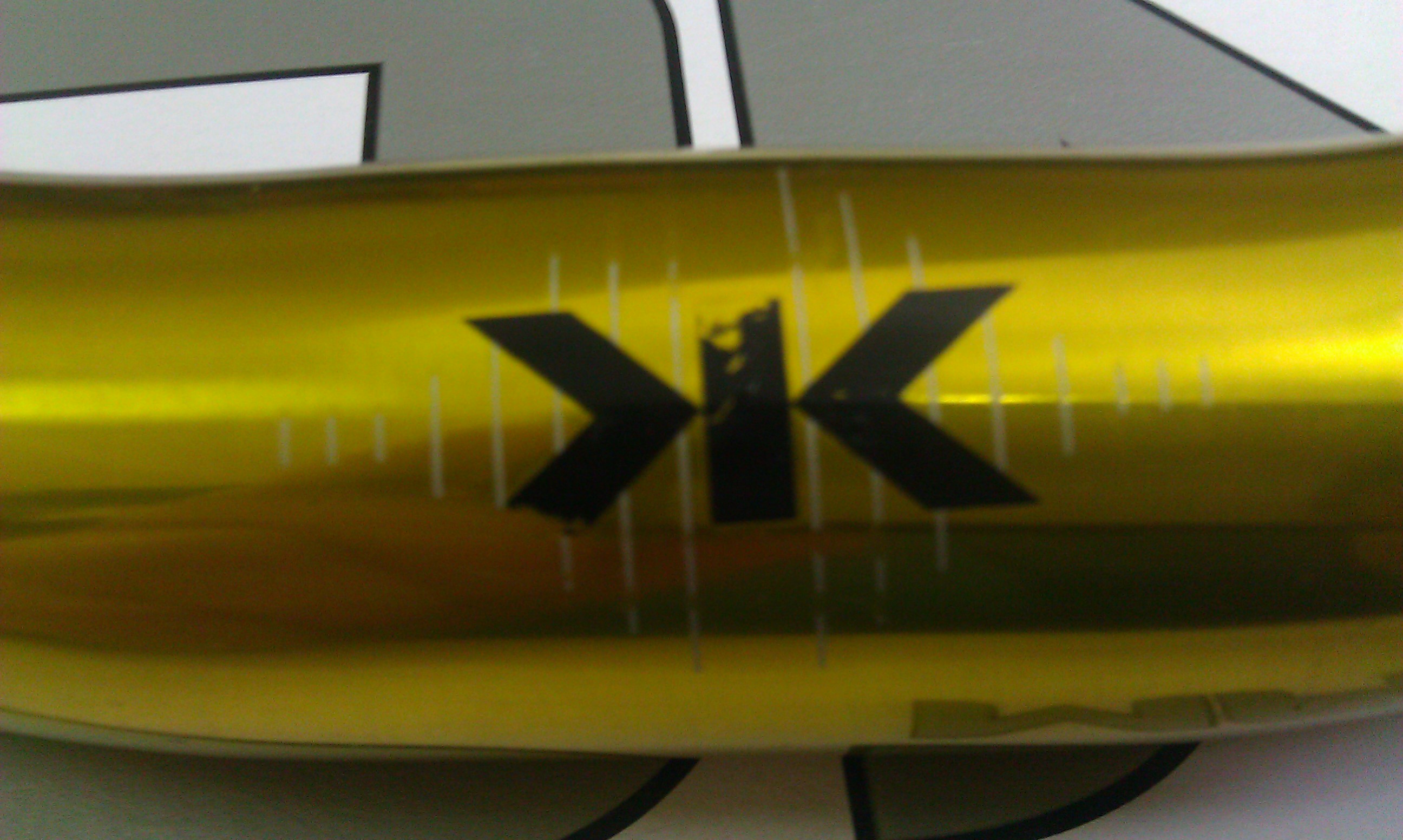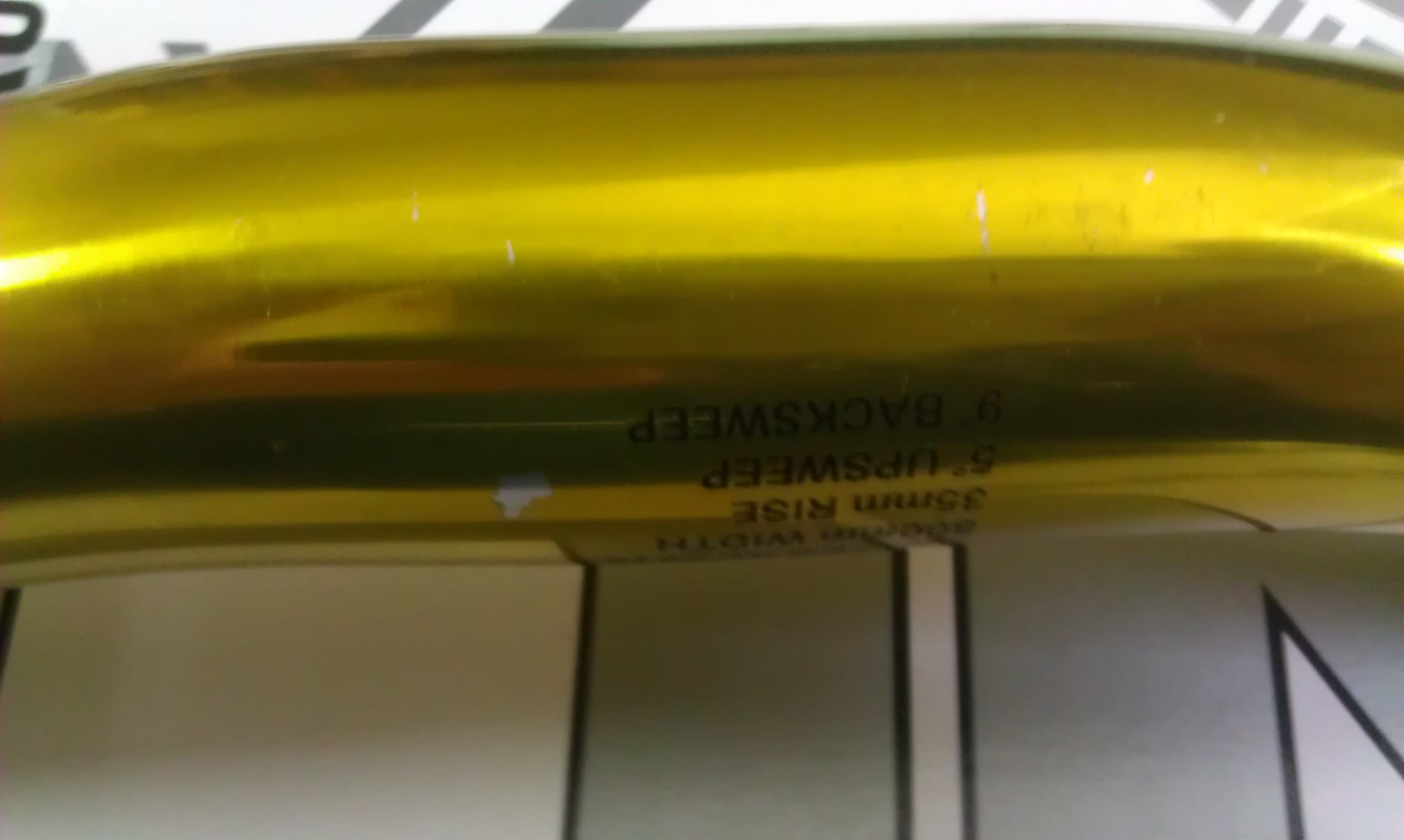 Четкие следы от выноса и грипс, на логотипе глубокая царапина, весь руль в мелких коцках, сколы краски, от блеска "нового" руля ни чего не осталось!!!