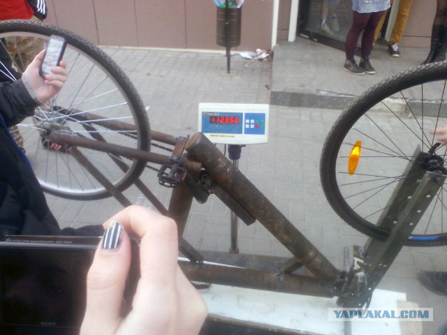 На безмен надежды нет, взял с собой весы и привёз всё это на "Газели". Выгрузился перед магазином, покатался. Позвал менеджера. Поставили вел на весы - 113 кг. Тот офигел. Выходит старший менджер. Он так же припух. Спрашивают: "А скидка в 60 процентов вас устроит?"