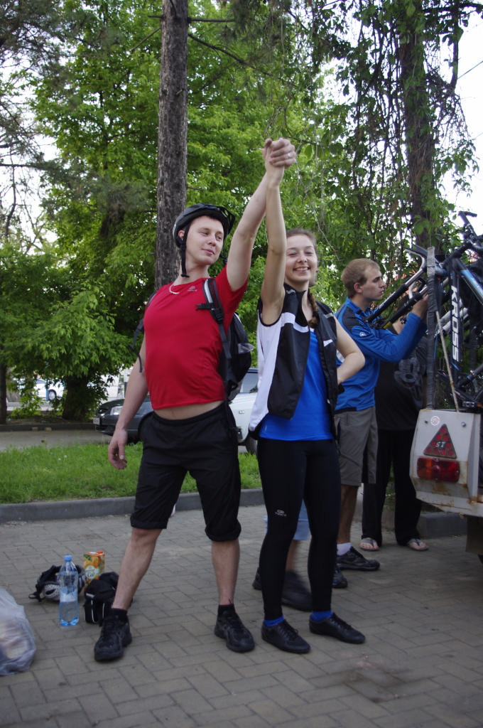 Ехали мы достаточно тихо, все переполняемые сладким чувством предвкушения… В голове крутились мысли о том, ничего ли мы не забыли, а если и забыли, то сейчас это уже не важно, думали о том, что нас ждет впереди, почему у Ларисы самые большие велоштаны, как мы будем жить эти дни, что увидим, сколько всего нам предстоит… Лишь только под конец поездки мы расшевелились и начали играть в «контакт», что позволило нам не замечать, что уже перевалило за полночь и, будь мы дома, мы бы давно уже спали в своих уютных теплых кроватках… В порт Кавказ прибыли мы в 00:30 – наступило 1 мая. Старт.