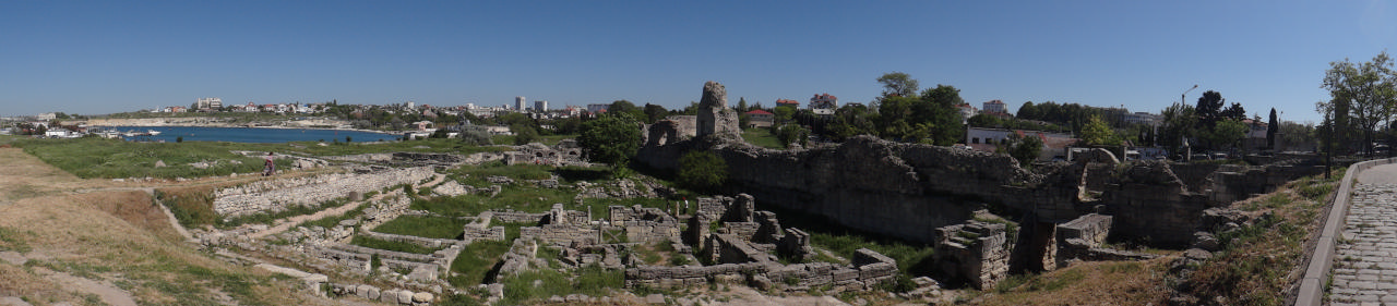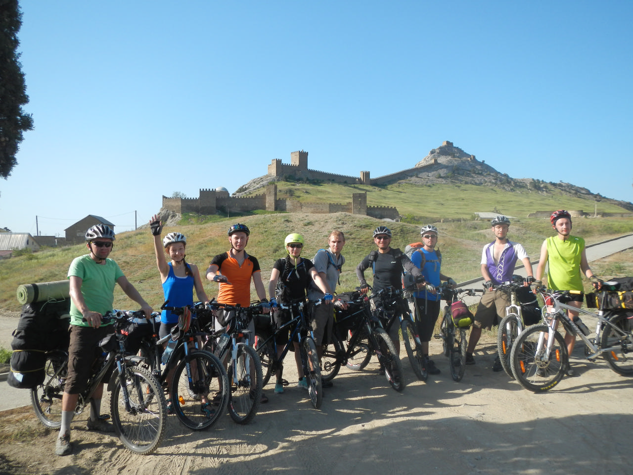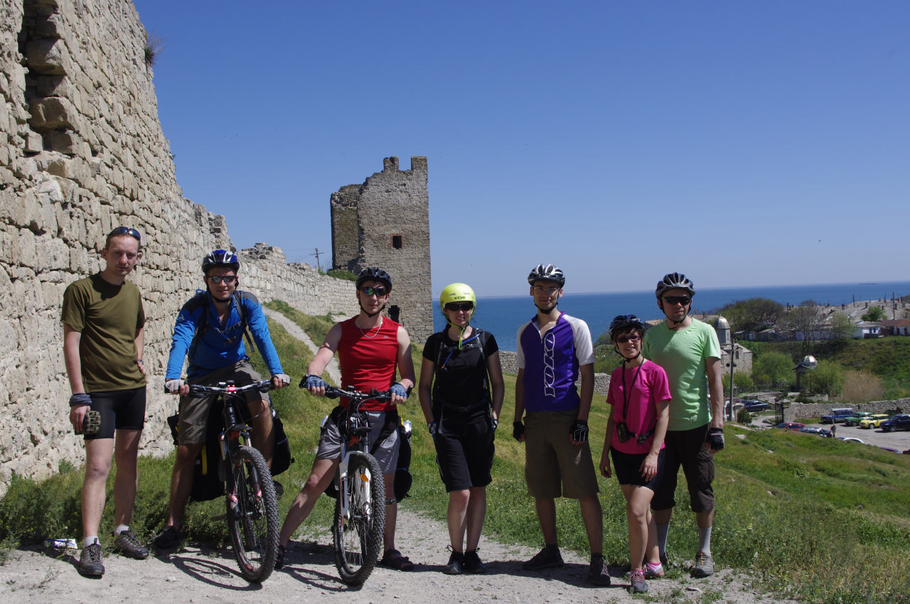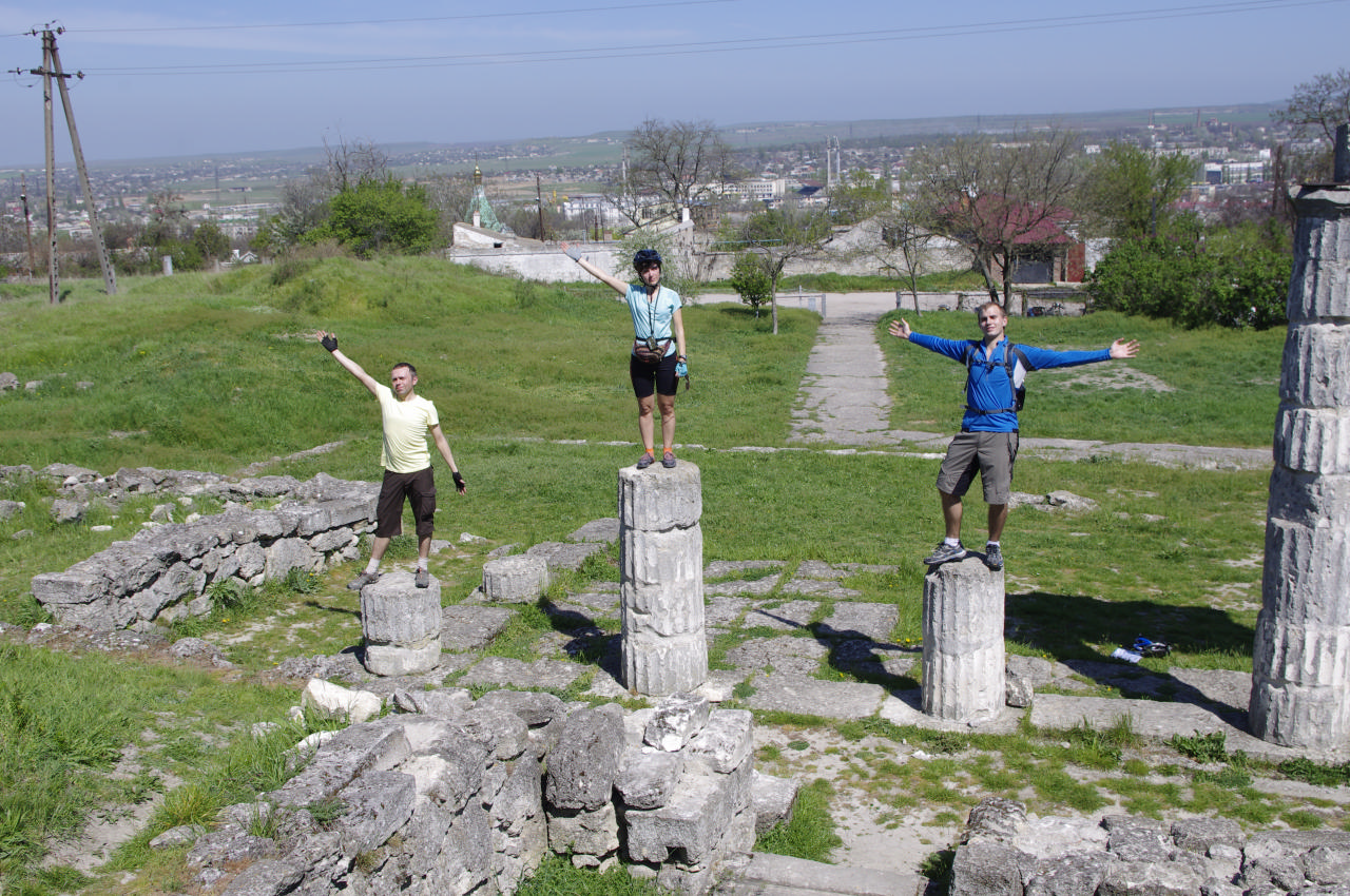 Чуть позже, когда солнышко стало припекать, и местные жители сбежались к магазину на колесах (приехала машина, как бывают изредка у нас для продажи молочных и прочих домашних изделий), мы поняли, что пора нам в седла. Пантикопей был следующей нашей точкой. Его мы пофотографировали со всех сторон, восхитились его размерами и чудесными видами, после чего спустились к центру города. Тут обнаружилось, что нас стало на одного меньше. После достаточно простых рассуждений мы осознали, что на спуске от нас отстал, кто бы вы думали? – Олег. Поисковая бригада прочесала окрестности, но вернулась ни с чем. Пришлось звонить ему – все обошлось, он нас нашел. Двинулись дальше.