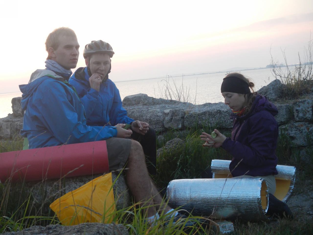 Выгрузились из автобуса, собрали велы, надели велоштаны – бегом к таможне, скоро отходит паром! Собрались мы оперативно, но на паром не попали… Так же, как и группа Майора, пришлось нам ждать около трех часов – ходил лишь один паром из двух, причем желающих попасть на него было море. Ночь была холодной, мы начали потрошить свои велоштаны в поисках теплой одежды, пытались дремать в зале ожидания и пили кофе. Дождались своей очереди, прошли нашу таможню, загрузились на паром – все, пути назад нет. Пока переправлялись, с интересом наблюдали за огнями, зовущими нас к противоположному берегу, - что нас ждет там?