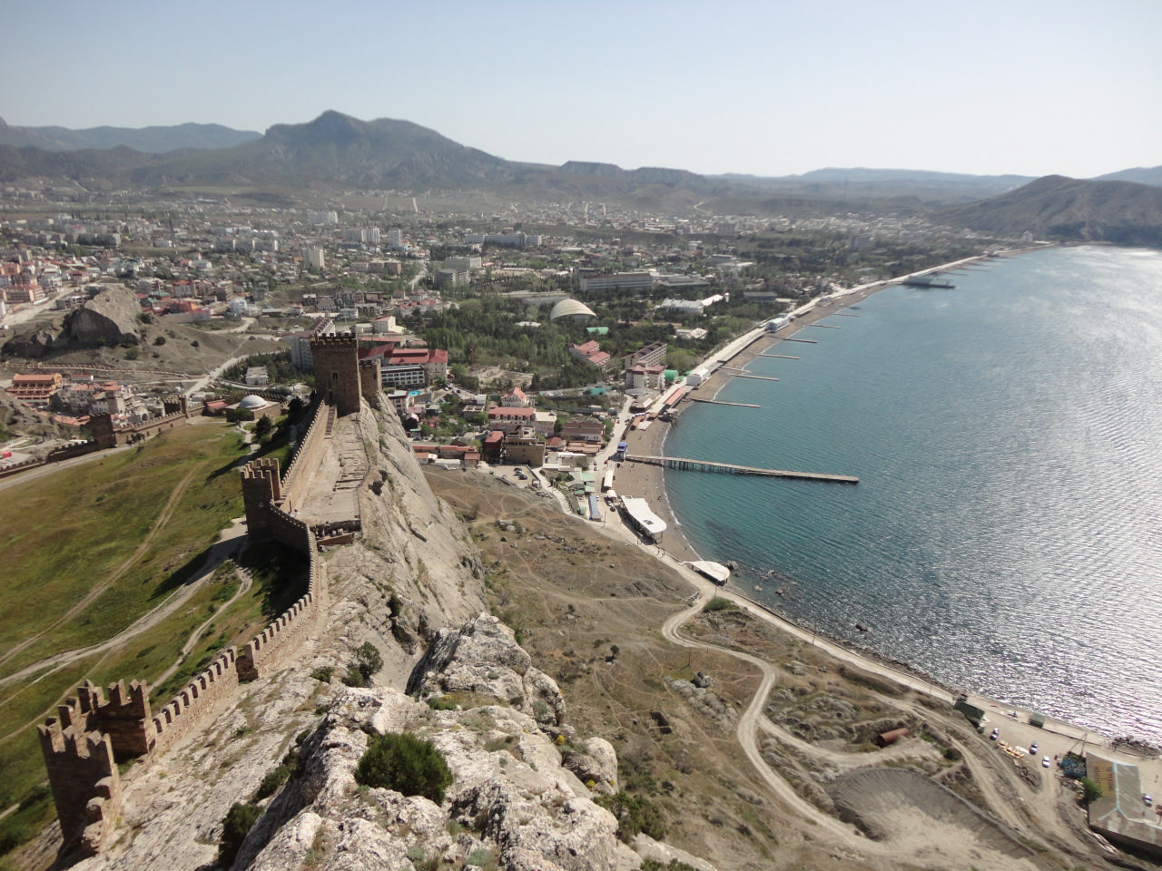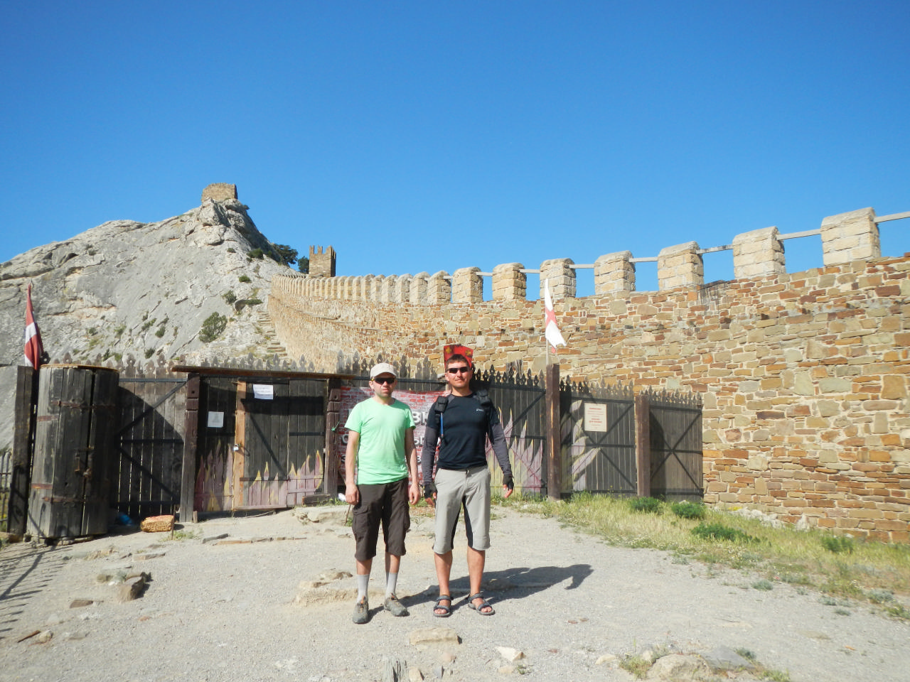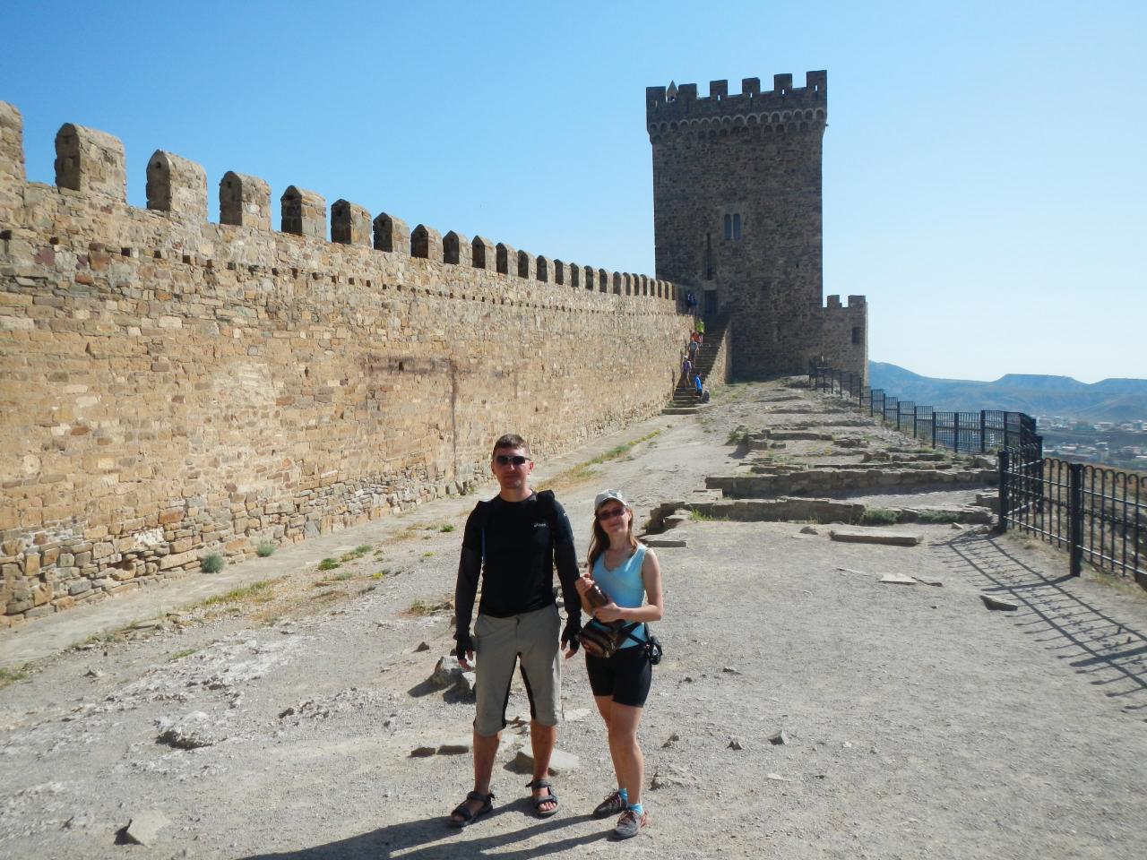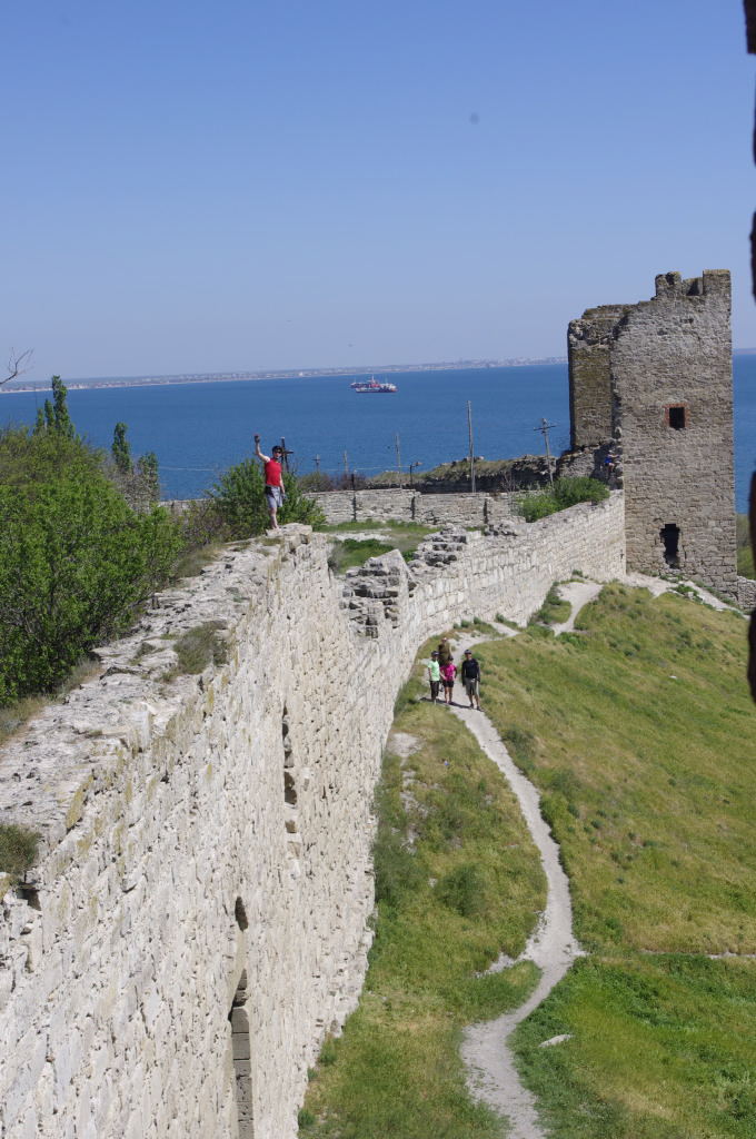 [spoiler]Подъем в 8:00. Пробег около 70 км. Дежурные – Шурик с Батыром. Смотрим Генуэсскую крепость, слушаем Олин рассказ о ней. Все стены крепостей мы осмотрели, я умудрилась залезть на одну из них так, что потом пришлось искать спасения – Дима с Олегом подсказывали, куда мне ставить ноги, чтобы слезть. Больше не играю в скалолазов. Возле крепости была церковь, от которой громко доносились праведные речи – запись была очень громкой и размеренной. Нас удивил такой подход.