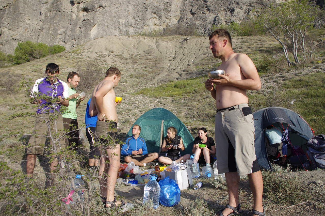 [spoiler]И вот настал новый день! «Доброе утро! Завтрак готов!», - зазывал нас голосок Ларисы! Они с Олей уже приготовили завтрак и поджидали нас всех. Как всегда, выползали мы из палаток нехотя, приходили в себя медленно, завтракали сытно ) Олег нашел новую жертву для исполнения его маленьких прихотей: сегодня Сережа подавал ему яства, пока не поймал себя на мысли, что ему и одной жены хватит )
