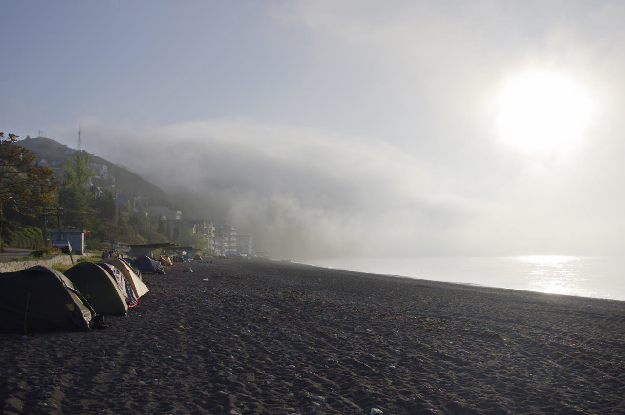 В самой Балаклаве, мы судорожно искали место для ночевки, баню, гостиницу, но с каждой минутой становилось все более ясно, что мытье придется отложить… и что не таким уж непривлекательным было то озеро. Окончательно расстроились мы тогда, когда нам предложили номер на троих для девочек, с кухней, душем, а для парней – большой восьмиместный номер. В тот момент, когда Андрей пошел поделиться с нами этой радостью, номер отдали другим желающим. Насладившись теплой водой в близстоящем туалете, мы поехали ставить лагерь ближе к окраине города.