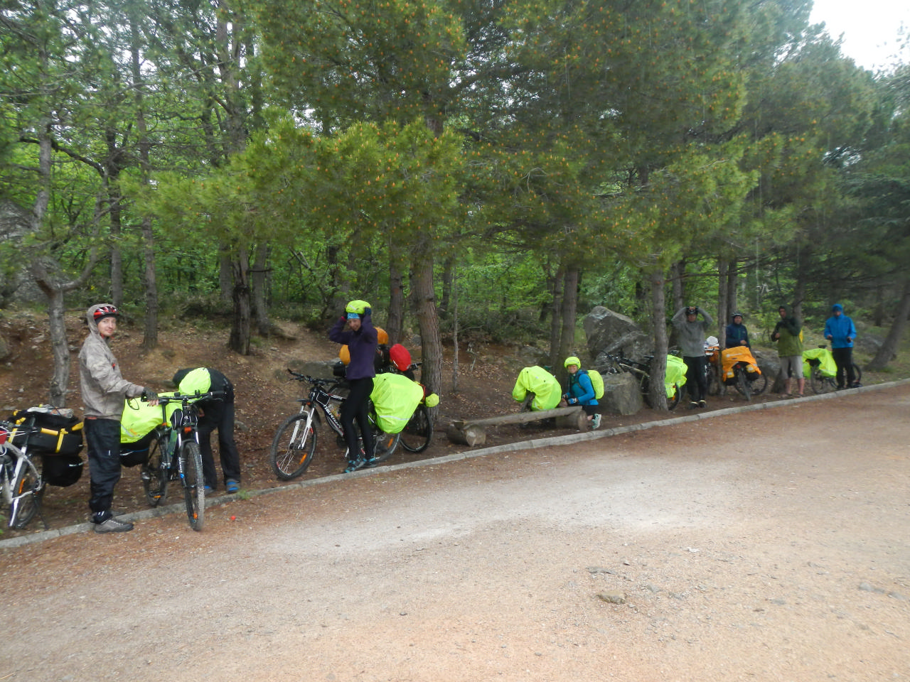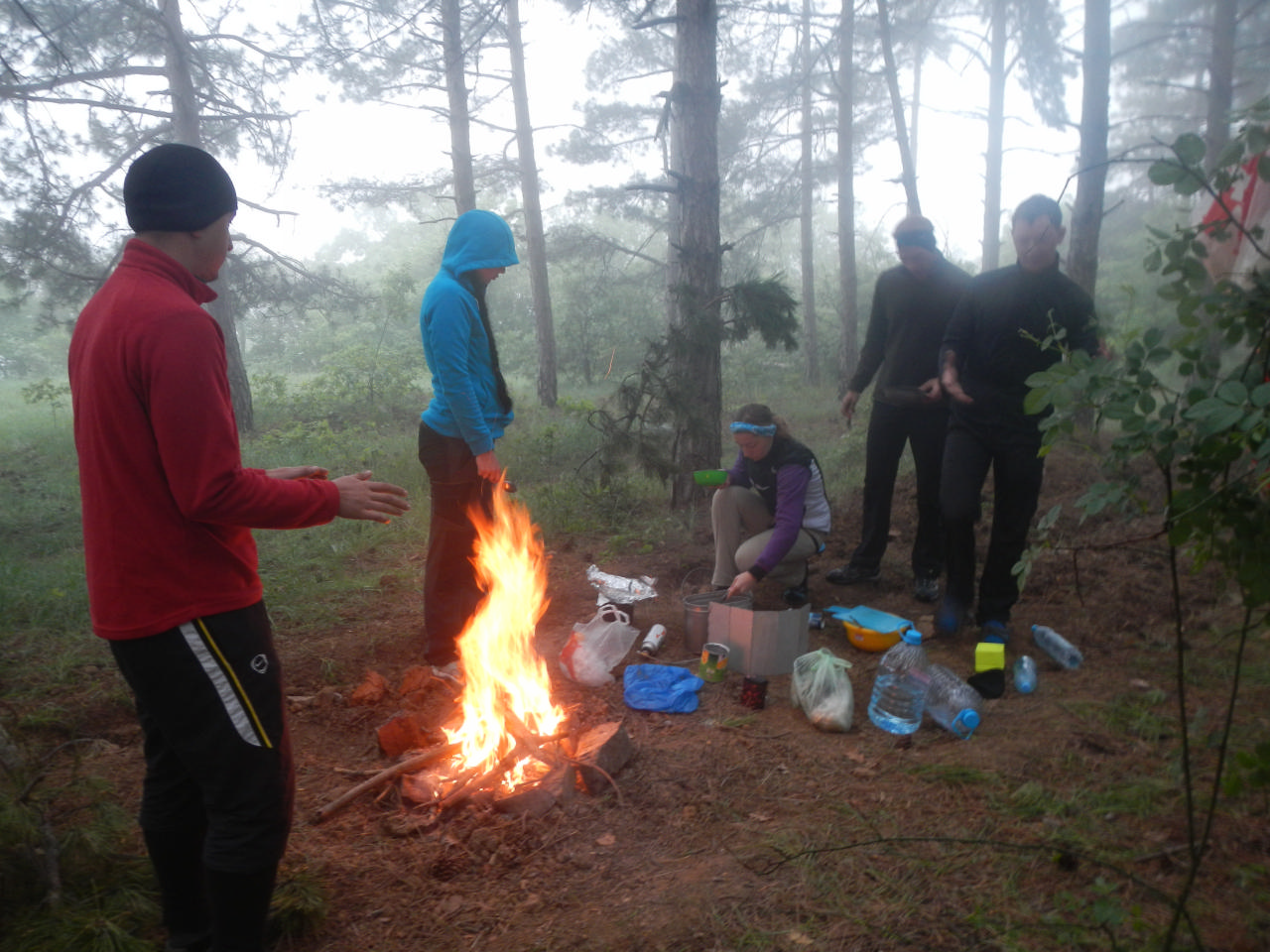 [spoiler]Пробег 43 км, дежурные Паша с Димой. Утро было очень туманным, сырым. Завтракали макаронами с сосисками, какао и остатками супа. Несмотря на хмурую погоду, Ларисино «Как вкусно, какие дежурные молодцы!!!», не могло не поднять нам настроение. Запаслись энергией – пора в путь. А путь предстоял непростой: подъем к поселку Лучистый обещал быть утомительным.