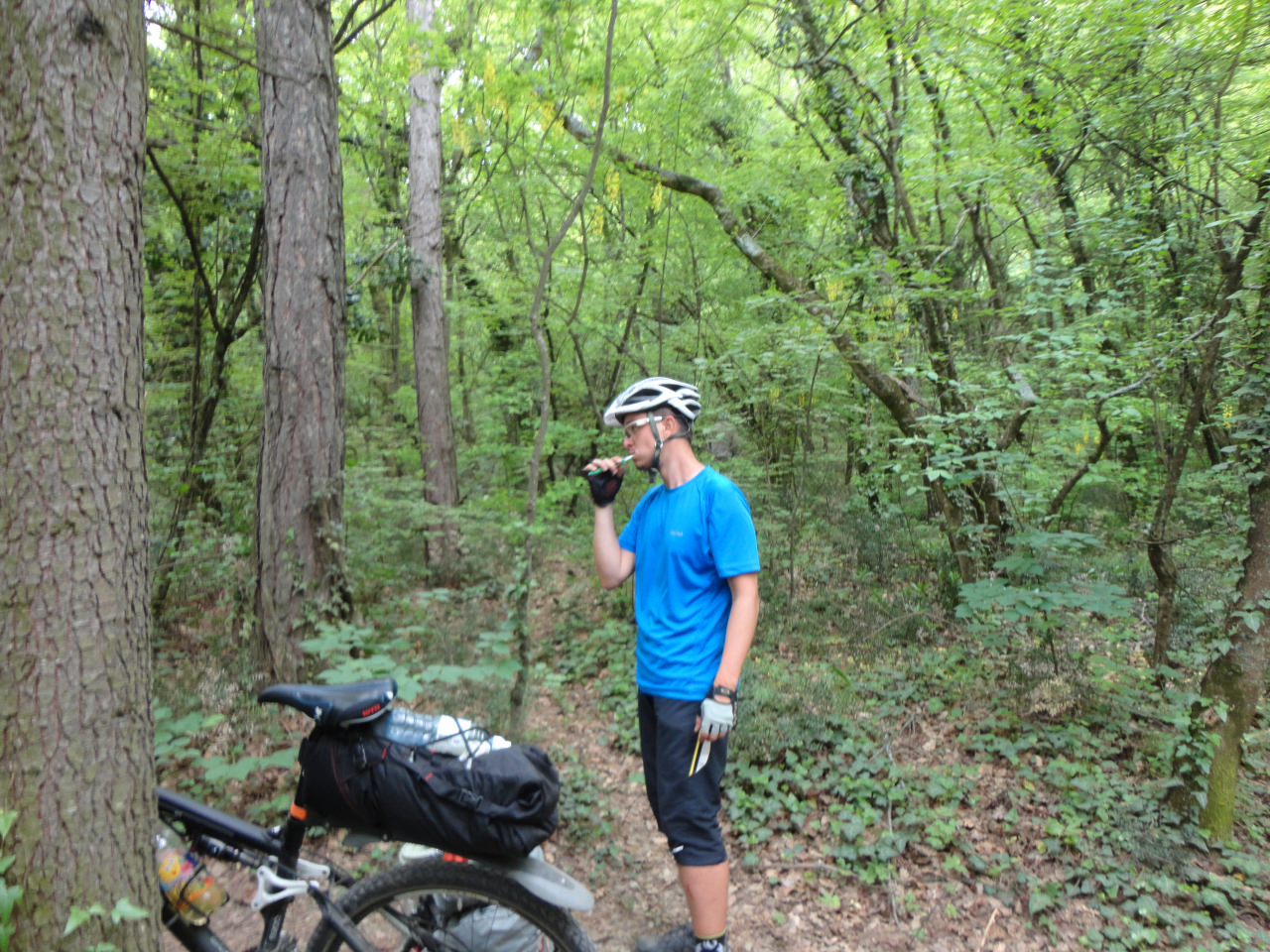 Олегу повезло, что особо ремонтировать ничего не пришлось, окромя проколов. Не повезло спине Олега – она таскала на себе все эти дни большой рюкзак, т.к. Олег поехал на подвесе, а значит и багажника у него не было. Олег – уникальный человек! Человек-википедия, который знает все, но молчит до тех пор, пока не спросят лично у него. Еще Олег – чистюля, как мы заметили из его постоянной чистки зубов прямо на дороге. А еще Олег – человек-невидимка, пользующийся этим свойством в те моменты, когда ему предстоит выполнить какую-то работу «по дому» - собрать или сложить палатку, отдежурить… Но он не лентяй, вы не подумайте, на него даже злиться невозможно, Олег просто вызывает умиление!