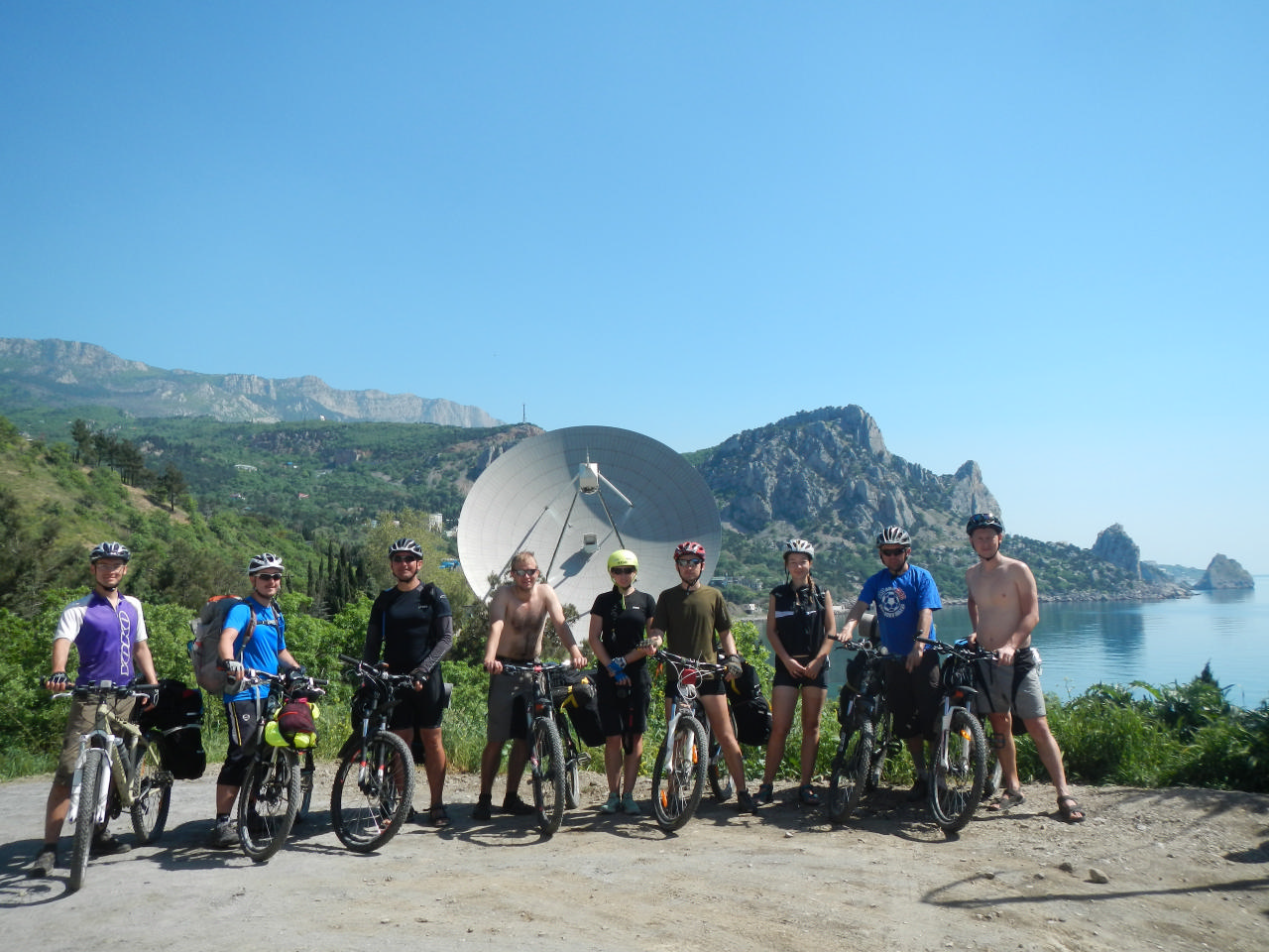 Сегодня путь мы держим в Балаклаву. Проехали Семеиз. А рядом с ним – обсерваторию. Конечно, на каждом из наших фотоаппаратов нашлись ее фотографии. А еще мы проезжали гору Кошка, которая вовсе не похожа ни на какую кошку… Я дважды пробилась, на заднем колесе вылез корт и проколол камеру. Позже протерлась и сама резина… Запасной не было – латали обрезками камер.
