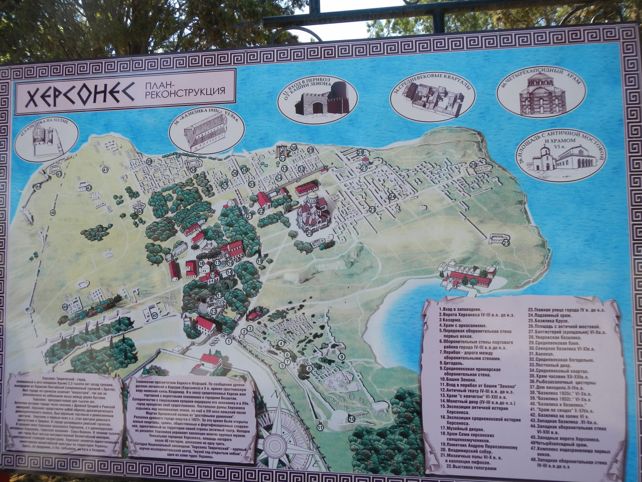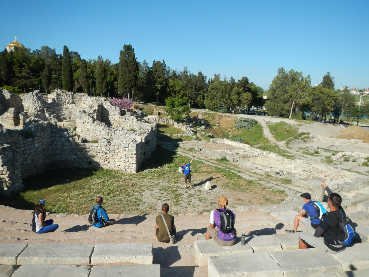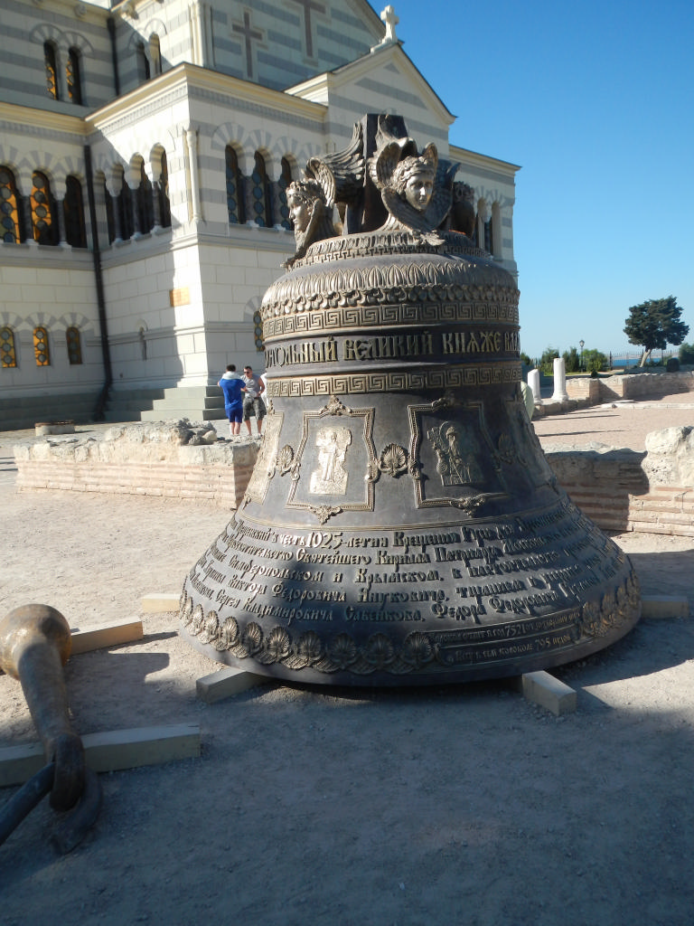 В самом Севастополе мы не надолго задержались, основной целью был Херсонес. Его осмотру мы уделили не менее трех часов. И там было на что посмотреть, ведь площадь огромная! Я не знаю даже, с чего рассказ начать! Был там амфитеатр, мини-Колизей, - там и по сей день театральные представления проводятся. Еще – Базилика, от которой остались колонны; колокол, у которого в свое время Буратино монетки свои закапывал в стране дураков. Между прочим, у колокола красуется надпись: «Камни в колокол не бросать», что несколько удивляет. Как выяснилось позже, существовала традиция – загадывать желание и кидать камень в колокол, чтобы оно сбылось. Еще нам показали те археологические ценности, которые были найдены во время раскопок, но еще не обрели свое место. Выставочный зал с голограммами позволил нам увидеть красоту украшений, которые носили женщины в Херсонесе. Самыми внушительными и по размерам, и по тонкости работы были ожерелья – мелкие детали, выполненные с точностью – высокий уровень мастерства, который был достигнут без современных прибамбасов. На территории Херсонеса расположилась церковь. Ее я не посещала, но рассматривала огромный колокол, который не установили к тому моменту, поэтому он просто стоял на земле. Осмотр Херсонеса завершили фотосессией в амфитеатре, в котором Шурик даал представление )