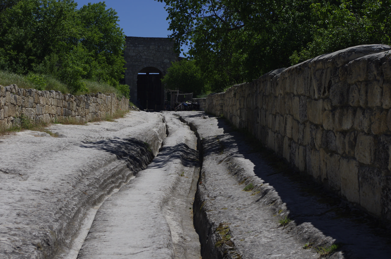 Колеи дороги, которая встретила нас у ворот, заменяла в свое время и водосток, не позволяя городу оказаться затопленным и собирая воду в колодцы. С трудом представляется, как люди жили в скале, на камне, но так они жили!