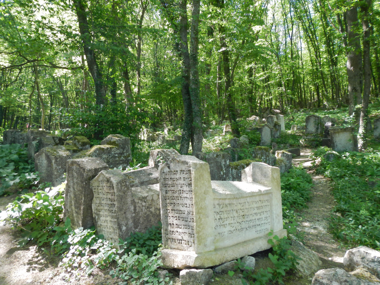 Мы вернулись к лагерю. До открытия Чуфут-Кале оставалось достаточно времени, поэтому мы не спеша позавтракали, насладившись очередным кулинарным шедевром от Ларисы – фруктовое желе хоть и не успело застыть, но вкус его был очень насыщенным и освежающим! Мы знали, что рядом находится заброшенное кладбище, поэтому пошли взглянуть на него. Оно и впрямь было старым, полуразрушенным, заплетенным какой-то повителью, но не устрашающим. Атмосфера на его территории была глубоко таинственной и вызывала чувство уважения к тому, что мы видим. Возле каждой могилы стояла надгробная плита с надписями на непонятном мне языке, но надписи были внушительной продолжительности – я уверена, что там были какие-то жизненные мудрости. Плиты были двух видов. Как объяснил нам Батыр, - одни обозначали, что захоронение находится здесь, а другие – на другой населенный пункт. Кладбище было огромным, мы даже не стали лезть в самые его дебри, а повернули к Чуфут-Кале…