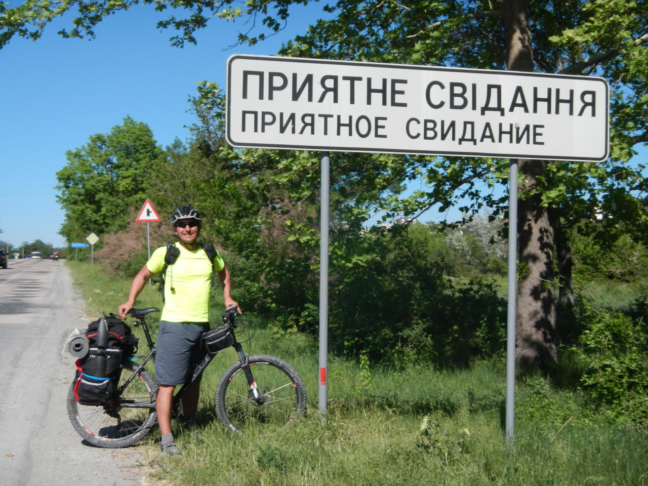 По пути у меня в очередной раз рвануло колесо. Правда справились мы с этим делом, на удивление для Батыра (не успел он поматрасить), быстро – спасибо Сережке и Шурику, как всегда. Дорога до Симферополя была нетрудной. Не смог не привлечь наше внимание дорожный знак с названием населенного пункта «Приятное свидание» - романтичное название, не так ли?