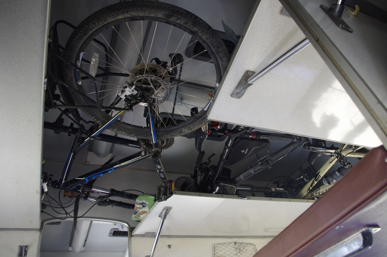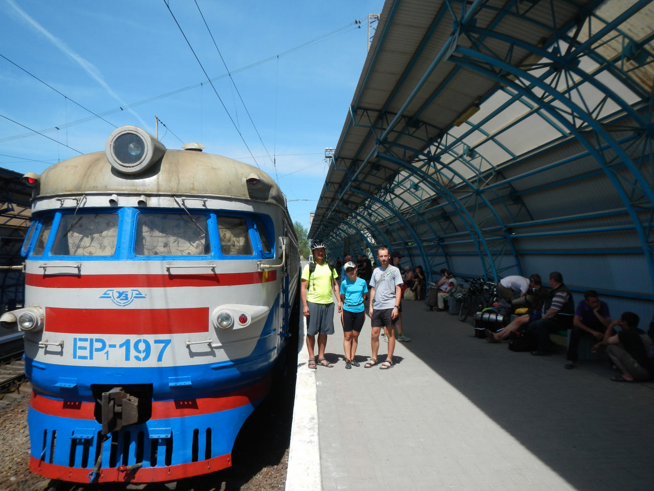 [spoiler]Поздний подъем – 7:00. Утрамбовывали вещи, как могли, чтобы больше влезло в велоштаны. Обнесли АТБ и близлежащие алкогольные магазины. Цены на электричку оказались щадящими – полцены билета за человека. А вот с местами под велы все оказалось все не так просто: электричка – одно название, а приехал поезд. И, как это часто бывает, бабульки уже караулили его и создали очередь. Я и Оля принимали удар на себя – влезли вперед всех, выслушали о себе много нового, объясняя, что мы хотим занять места для велов, чтобы расположить их компактно и не мешать пассажирам. В итоге, мы отвоевали 2 последних купе, приняли часть вещей через окно и дождались наших. Батыр был несказанно рад, что мы эту оборону выстояли! Велы пришлось запихнуть по 3 штуки на самые верхние полки, велоштаны – под нижние полки. Оказалось, что у нас еще и много свободного пространства!