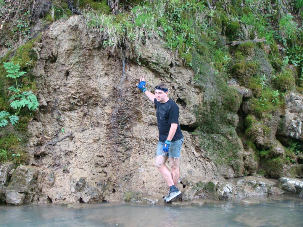 В лужах на дне - жидкая грязь и куча мелких камешков, которые чудесно забиваются между верхом сланцев и ступнёй и при ходьбе доставляют незабываемые ощущения. Сама грязь липкая настолько, что при попытке поднять ногу липучка не держит и тапок остаётся приклеенным к дну.