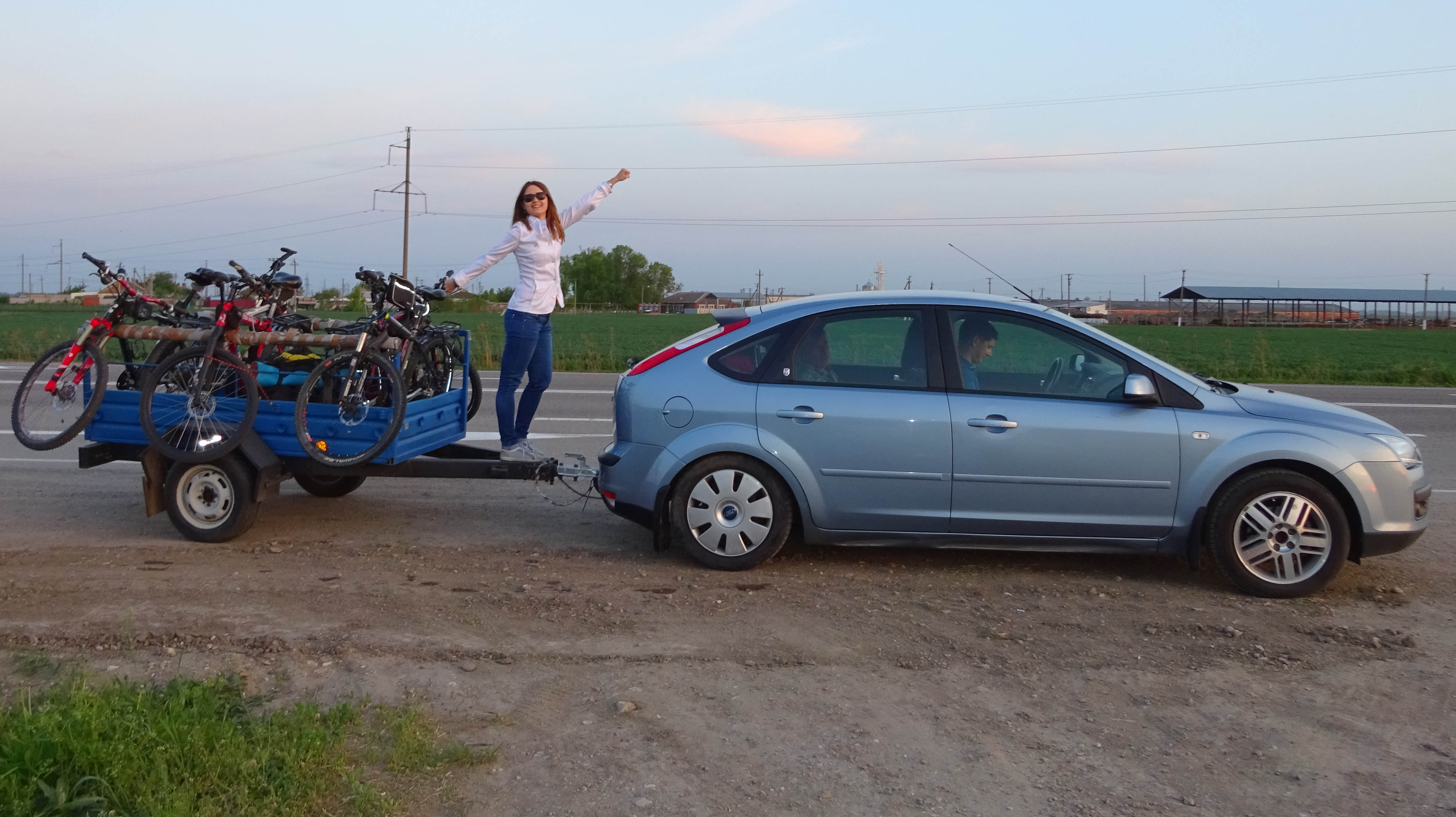 Не теряя времени, в пятницу 29го апреля мы выехали сразу после работы на двух машинах с нашим велоприцепом и оставили их у знакомого Бори в поселке Ильич, всего в 11км от переправы от куда и начался наш веломаршрут.