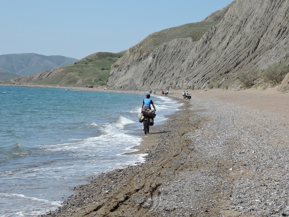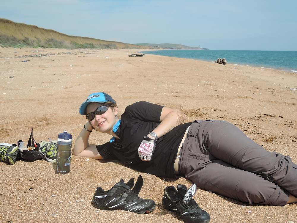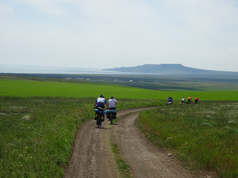 Пляж из кинетического песка. Вид на заповедник с места куда водят экскурсии. Фото Виктории ВитковскойСкалы-корабли. Напролом.Раскаточные степи войсковых полигонов до самой Феодосии в первый день дались тяжело. Сегодня 95км с набором 680м по нетвердым грунтам.