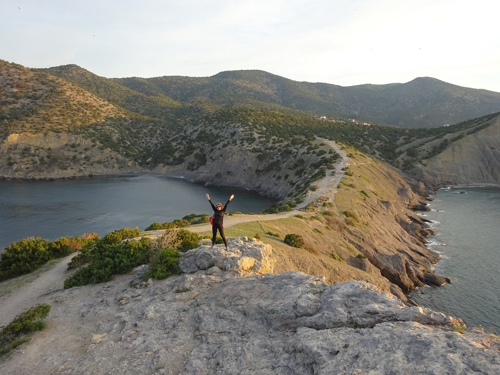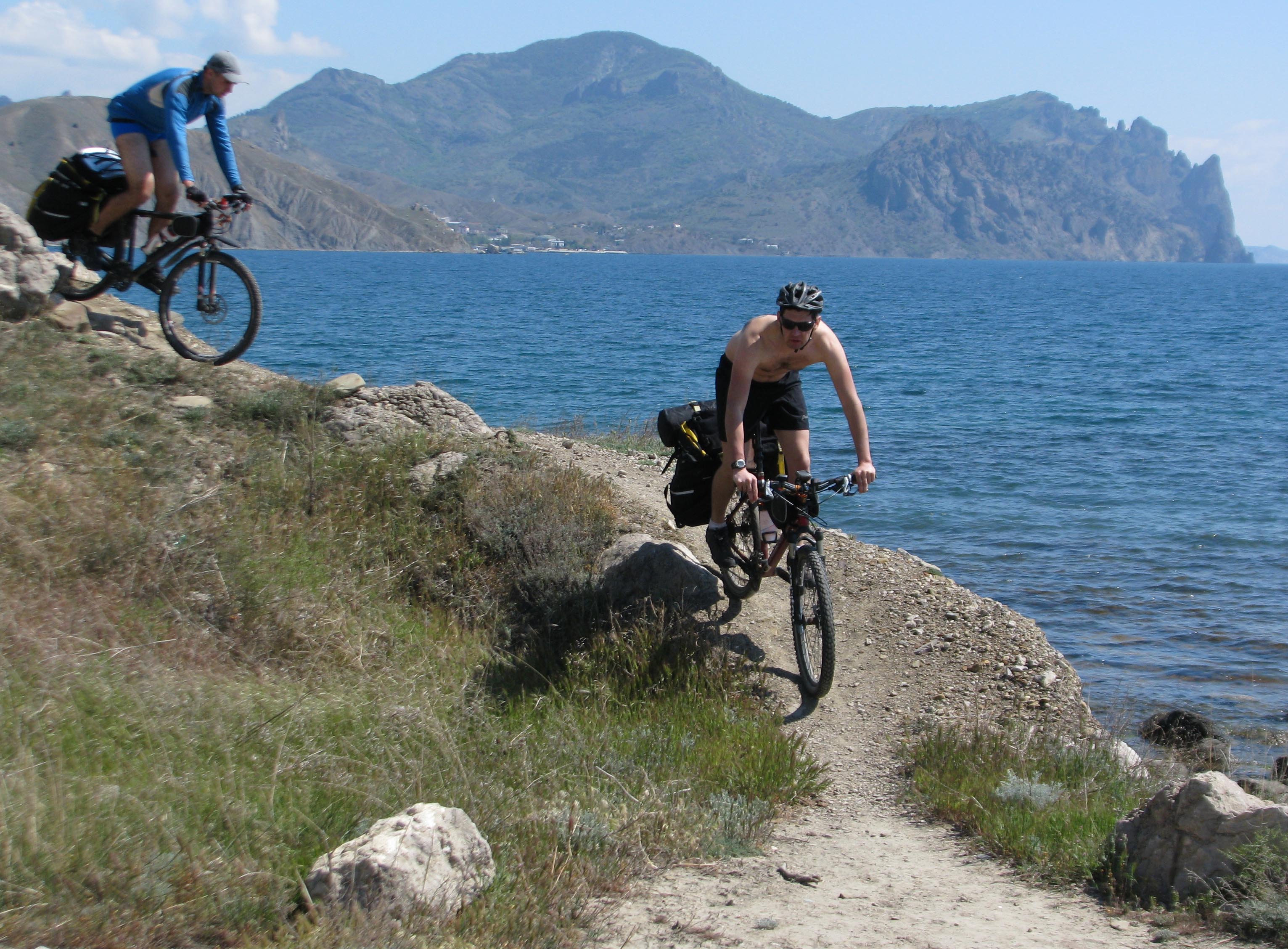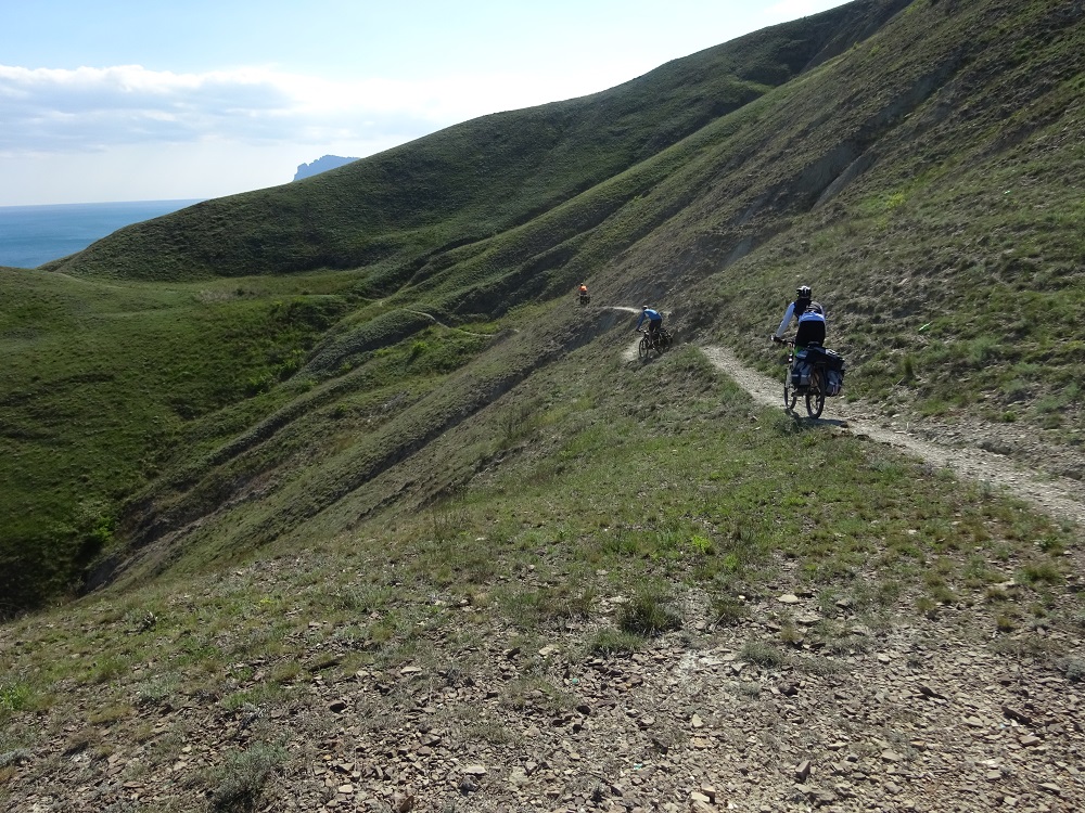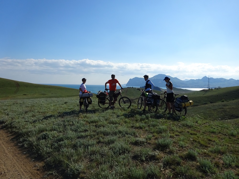Непродолжительный подъем и мы спускаемся в Новый Свет, жемчужине Крыма, поселку, который расположен в красивейшей Зеленой Бухте. Поддавшись на просьбы девочек, что пора бы уже помыться, снимаем не плохое жилье по 300руб./чел. Российские цены сюда еще не дошли, в отличие от Большой Ялты. Сегодня 54км с набором 1200м, несмотря на затяжной подъем к Меганому, ехалось очень легко и непринужденно, везде красиво и не замечаешь какой либо усталости.