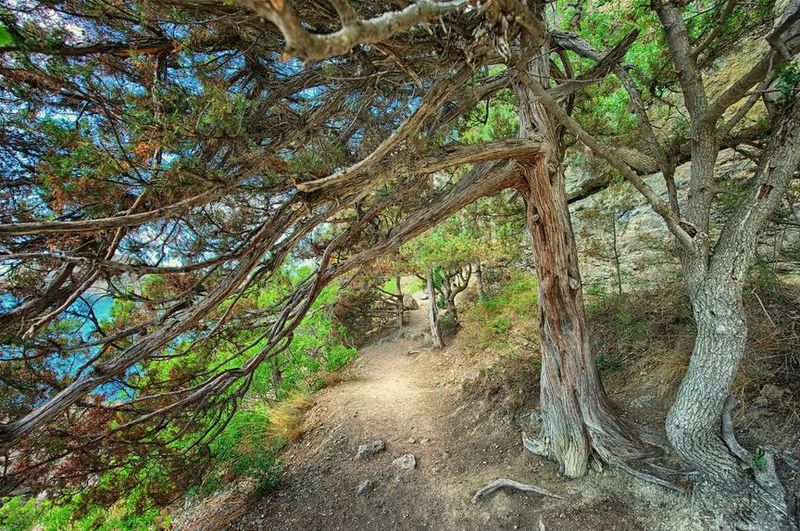 Голицинская тропа. Грот Шаляпина.Мыс Капчик. Тайные гроты Коба-Кая."Шаляпинцы" вернулись, как и обещали, к 8 утра, тем временем проснулась и собралась вся команда, сегодня нам предстоят не простые перевалы и хочется все проехать именно не по трассе, ведь природа этих мест очень красивая. Окрестности посёлка имеют статус ботанического заказника благодаря реликтовым рощам древовидного можжевельника и эндемичной для этих мест сосны Станкевича.