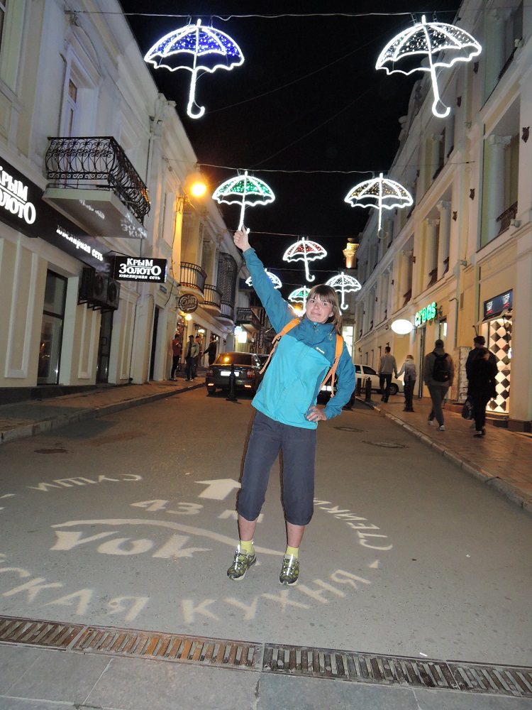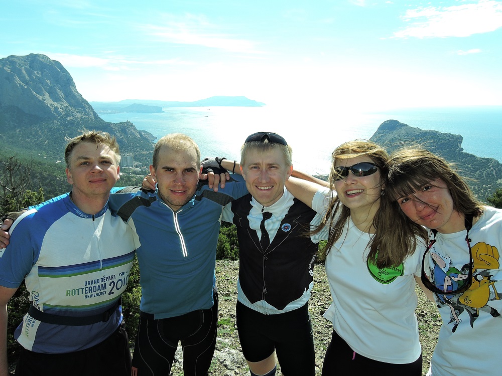 На велах цвета рамы не было видно.Далее 15км по трассе до Алушты с заездом на мойку велосипедов. В Алуште пообедали в кафешке как люди уже чистые и отмытые, опять поливает дождь и мы разделились на умных и красивых. Умные поехали на троллейбусе в Ялту, а красивые своим ходом. На вокзале в Ялте попытались снять жилье, нас окружила целая орава бабулек и теток, нахраписто предлагая свои услуги. С трудом выбрав одну тетку поехали смотреть жилье, но с первого раза не понравилось, в Ялте вообще весьма убогий жилой фонд сдают, в итоге сняли у другого дядечки, не лучше, но хотя бы дешевле. Вечером гуляли всей компашкой по набережной Ялты, зашли поужинать в классную столовку.