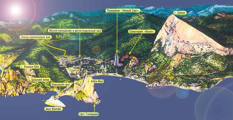 Крымские красавцы. Побережье на рассвете следующего утра. Посёлок Новый свет возник усилиями одного из основоположников российского виноделия, князя Льва Сергеевича Голицына, в конце XIX века. Князь основал здесь, в своём имении, завод по производству шампанских вин. Половина инициативной группы встало в 5 утра