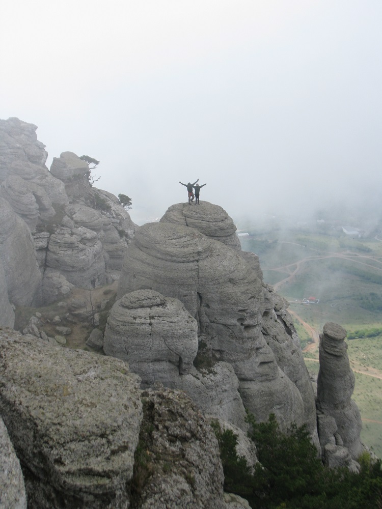 Триллер под хребтами Караби яллы.Небольшие прояснения. Травма Андрея.Следующий день на погоду был более благосклонен к нам. Поднялись на Демерджи гору. Уже валом туристов, но гора очень интересная.