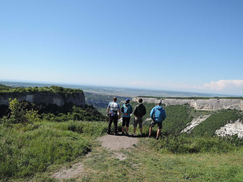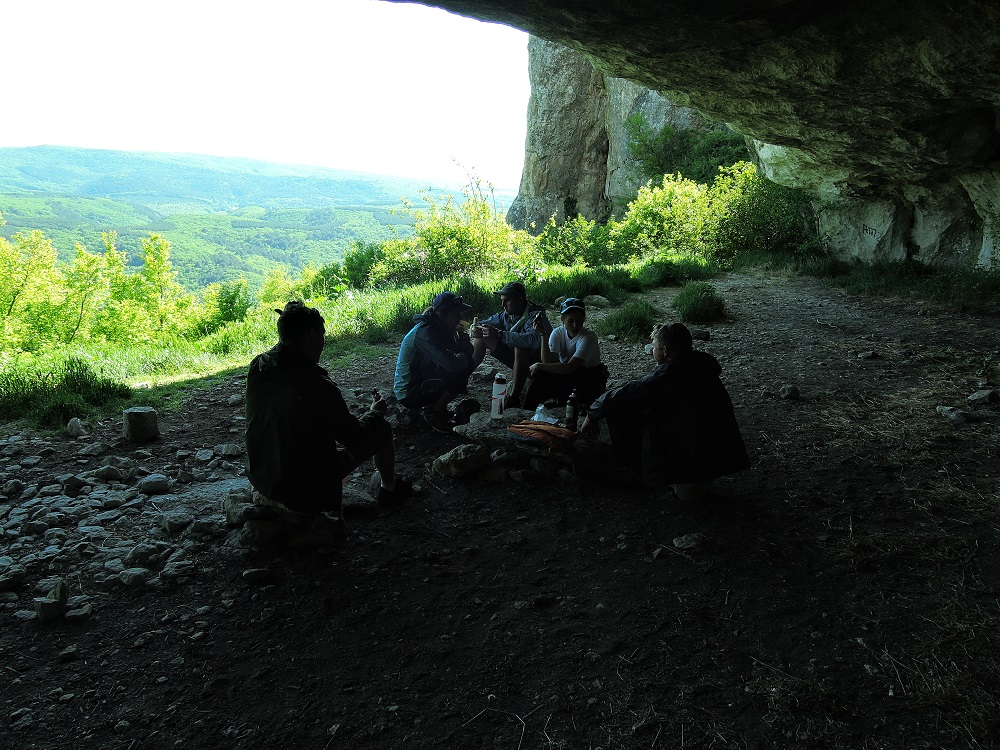 Ужин. Бивуак.На следующее утро опять делимся на красивых и умных. Боря с Олей едут в Балаклаву кататься на байдарках, остальная группа едет смотреть пещерный город Мангуп-кале. Встретится договорились на финише в Херсонесе или Севастополе на параде.