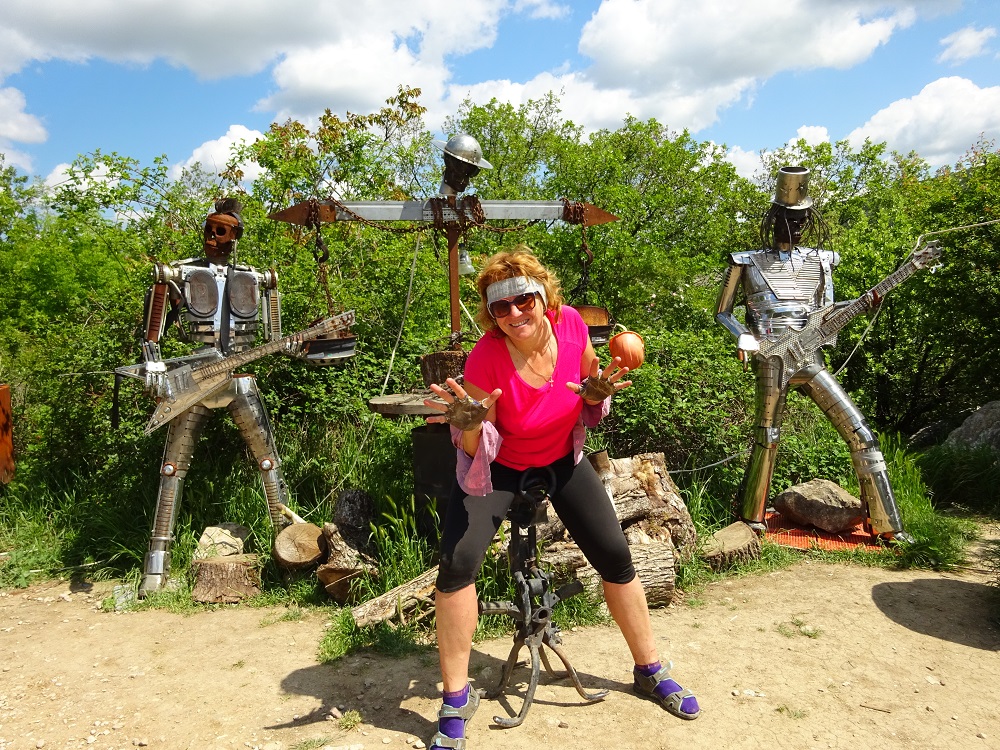 Далее на пути случился забавный случай. Прям на дороге остановились возле байк-шоу с очень интересными скульптурами. Андрей с Наташей немного отстали, в том числе чтобы и их подождать. Ребята разошлись смотреть монументы, я стою на дороге их жду, смотрю едут. НО, проезжают прям мимо меня не оглядываясь, я сначала опешил от такой наглости и кричу: Эй, вы куда! Но, и след простыл. Пока не созвонились ребята накрутили километров 15, забавно что пропустили несколько поворотов в том числе и нужный нам. Но, времени у нас было валом, а настроение отличное, поэтому даже не обратили внимание, в отличие от тех кто накрутил лишнюю 20ку с подъемом