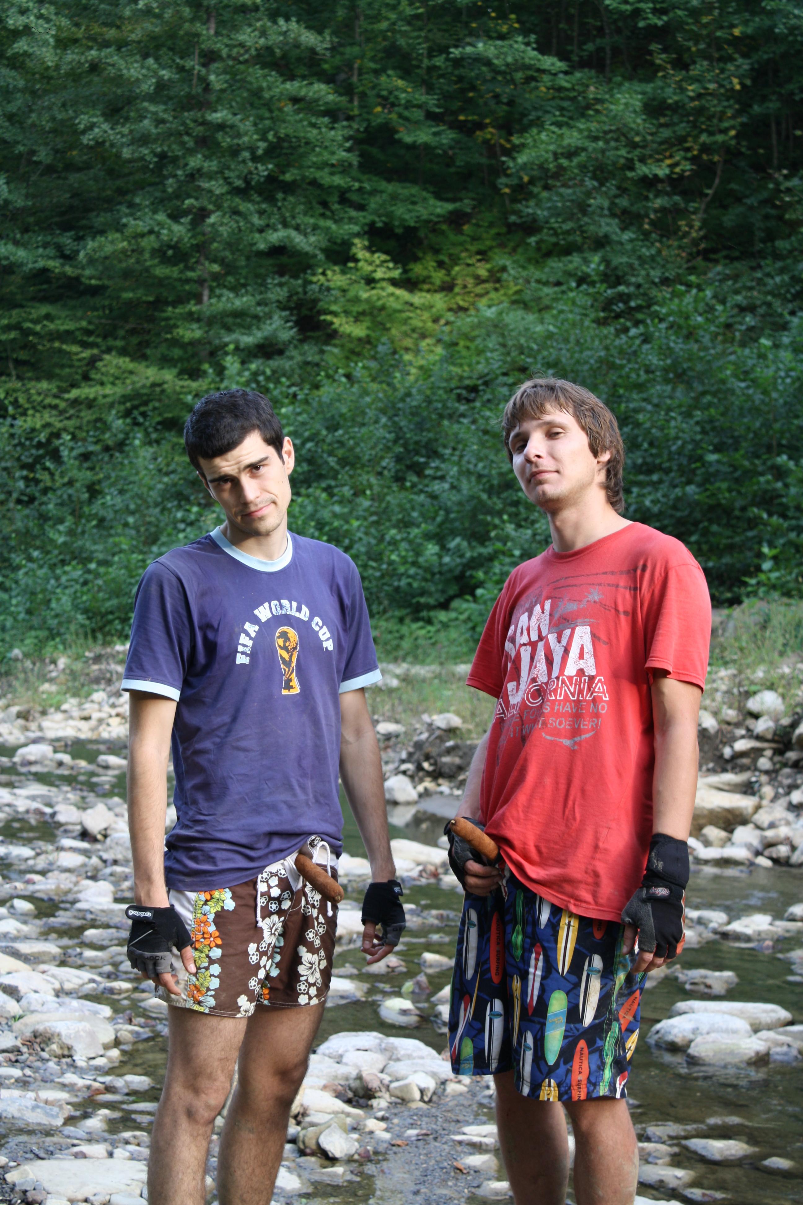 Проснулись поздно, около 11 и решили, что уже сегодня точно не успеем преодолеть 700 метров и выскочить в Поднавислу вовремя, поэтому остались спокойно готовить завтрак или обед и неспешно собирать лагерь. И тут слышим, идет кто-то… Оказалось вчерашние лесогубы с ружьями идут на охоту. Макс побежал к ним поблагодарить за указанный путь и тут выясняется что мы встали в 300 метрах от берлоги медведа! (ахтунг!