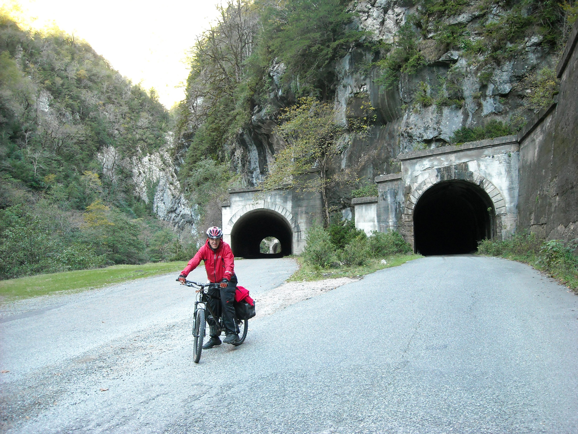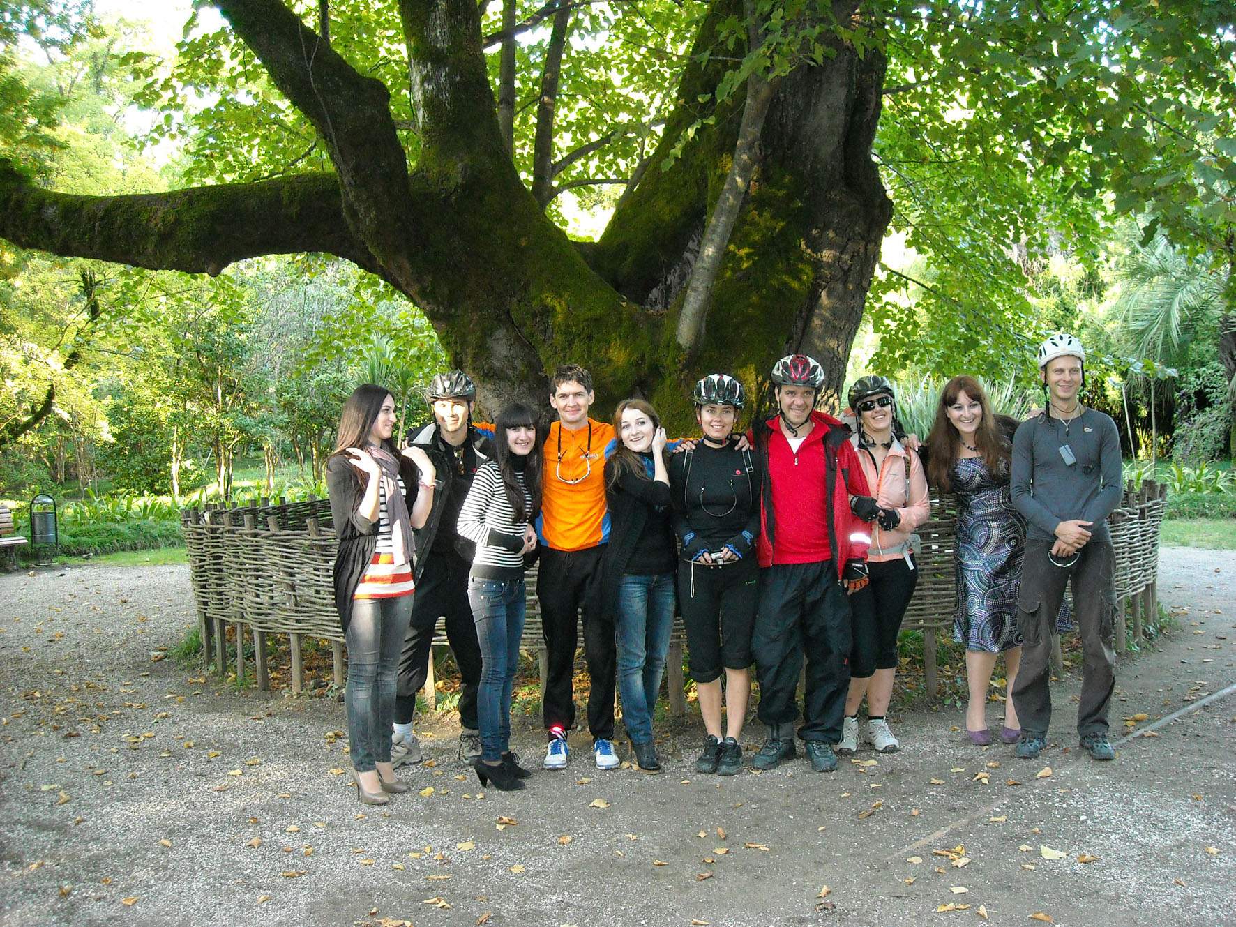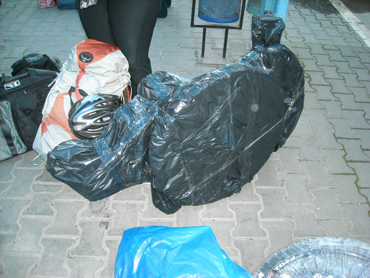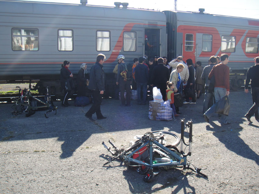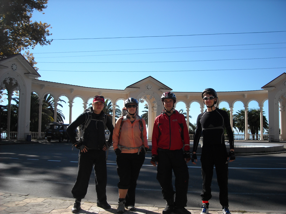 , или в догонялки играли, лоси блин, но в общем Катя прошла границу сама, а Саша присоединился к группе Сергея А. Все прошли границу для автомобилей, там оказывается для пешеходов есть отдельная, но через автомобильную тоже пропускают, абхазскую границу мы с Серегой М вообще не проходили, там ее рядом можно пройти никто на нас и глазом не повел, а Макс говорил, что у них на абхазской границы только спросили «как съездили», на российской же все четко, проходная, проверили паспорт, еле просунул вел, очень быстро прошли 5 мин. и пожалуйста в россию, рюкзачек просветили на ренгене и вперед. Звонит Катя, говорит что прошла границу, и где-то потерялась, стоит там то, ну говорю - жди нас, мы прошли границу и сейчас тебя встретим, соверешенно без задней мысли, что есть еще и другая граница для пешеходов, за которой она нас ждала, едим с Серегой М, Кати не видно, уже доехали, где заканчивается Выселовка и начинается Адлер, звонит Катя — вы где, мы там-то, она говорит что там она не была, ждем Катю возле магазина, она бедная нанервничалась, наметалась между границами, не знала где мы проходили, а я не знал, что границы две. Вот не надо было идти самой, а ехать с группой или хотя бы по парам, тогда все было бы хорошо. Ну, все обошлось, Катя вроде психику восстановила к моменту приезда на вокзал. Когда заехали в Россию, ехать сразу стало в два раза тяжелее, движений в 5 раз больше, дорога хуже, людей, магазинов куча, пока проезжали узкий тротуар на мосту я немного поцарапал руку, Катя тоже чуть не шлепнулась, Серега М чуть дальше вообще убрался, когда на бардюр заезжал, короче до вокзала от границы 16км пока проехали, больше травм было, чем во всей Абхазии. Там я в первые достал аптечку, которую брал на всю группу, обработал небольшую царапину и заклеил ее лейкопластырем. Рядом с вокзалом сели в трактирчик, был четвертый час только, поезд в 18:18, поели горяченького, хряпнули фронтовых на дорожку, за обед оставил 180руб. Группа Сергея А пошла на пляж (находится рядом с вокзалом) и отдыхала там до пол шестого. Мы уже в 17:00 начали сбор велов, в троем с Катей и Серегой М мы слаженно все скрутили, в гаграх покупали пакеты на 120л и пищевую пленку, ее кстати надо раскручивать без нервов, оч. Тонкая и рвется. Саша прибежал к нам с выпученными глазами с разодранной этой пленкой на все части, кричит помогите мне, а то мне уже нервов на эту пленку не хватает, мы над ним немного пошутили, типо что же твоя новая команда тебе не помогает, за что дико извиняемся, поезд уже стоял и можно было загружатся, но мы конечно помогли, я спокойненько распутал пленку, все мы ему замотали, закрутили, положили мой вел в чехол и спокойно загрузились в поезд. Опять был тверской вагон и опять мне было тяжело засовывать велы на полку, особенно Сашин. Ехали мы весело, раздавили мой коньячек, потом Серега М достал 7 летний Гагрский коньяк, который покупал на рынке, к нам присоединилась еще прикольная девченка Света, которая составила компанию, всю дорогу травили байки и я был очень довольный и пьяный. Как все таки важно красиво завершить поездку. Надеюсь участники остались довольны, тем что посетили сею чудесную страну. Не смотря на раскол команды, все у нас было мирно, маршрут прошел без эксцессов, план воплотился в жизнь, посмотрели практически все, с погодой повезло, велики выдержали, приехали без травм, лишь мелкие ушиб