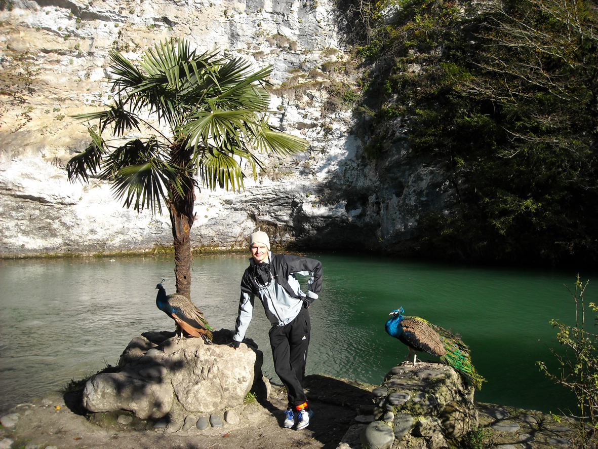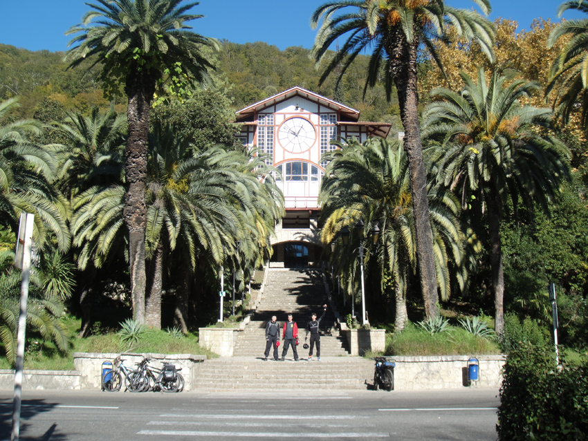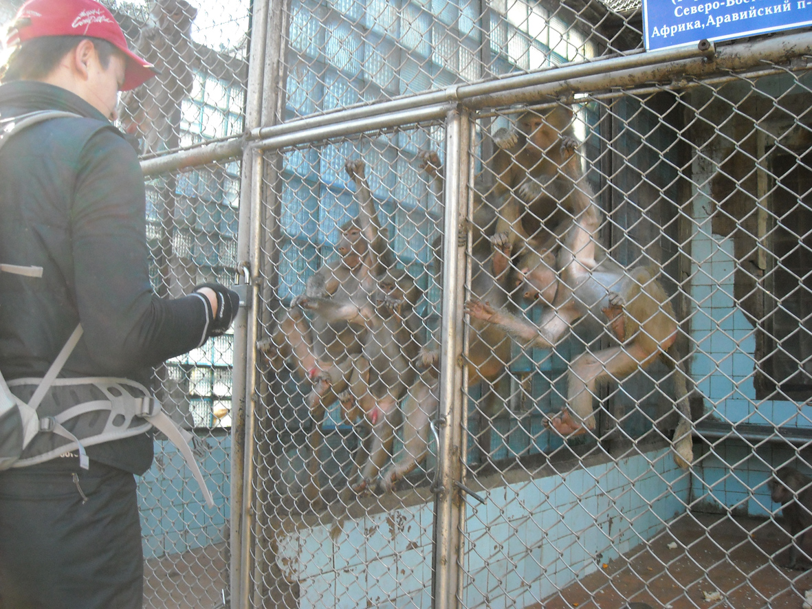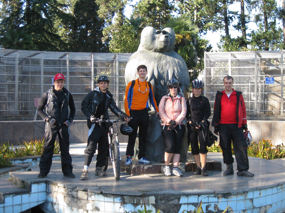 Проводница за одно выпросила у кого-то вел прокатится по быстрому, короче скрутились, собрались и сразу рванули в обезьяний питомник, как выходишь с вокзала, сразу на право, пару километров по прямой и по левой стороне питомник, причем на него ничего не указывает, вход нашли интуйтивно-дедуктивным методом, там по забору было понятно что что-то должно быть, заехали в ворота в конце забора, какая-то разборка машин, типо рихтовки, далее по дороге на верх по кривому подъему и выехали на не примечательный питомник. Обезьян там не так уж много, особенно в плане разнообразия, грубо говоря два вида, ну и может около 50 обезьянок на вскидку. Как рассказывали местные, в советские времена — это был один из крупнейших питомников мира, ставили там над ними кучу экспериментов, которые позволили научится делать прививки, которые делают нам и по сей день и лечить много болезней, а в конце 80ых годов даже выпустили обезьян на волю прямо возле Сухума, чтобы посмотреть как те приспособятся там к жизни, обезьяны выжили и до сих пор малочисленно там тусуют в верховьях Сухума, и поговаривают даже что в результате экспериметов были обезьяночеловеки. После того как их выпустили, чудили там они по полной программе, люди говорят в лес боялись ходить. А во время грузино-абхазской войны много объезьян расстреляли, говорят на них тренировались грузинские военные. Потом в начале двухтысячных много обезьян отдали в Сочинский питомник, поэтому Сухумский сейчас не шибко богат на ассортимент. Но на обезьянок прикольно посмотреть, поведение их конечно из разряда «это нечто», не пожалейте купить хурмы (на месте порезанная хурма для обезьянок обойдется вам в 100р., так что можно и заранее взять), чтобы их покормить, это вас позабавит от души. За посещение питомника заплатили по 100руб. В стоимость входит и посещение музея, где смотреть особо нечего, но можно сфоткаться, где стоят чучела обезьян.